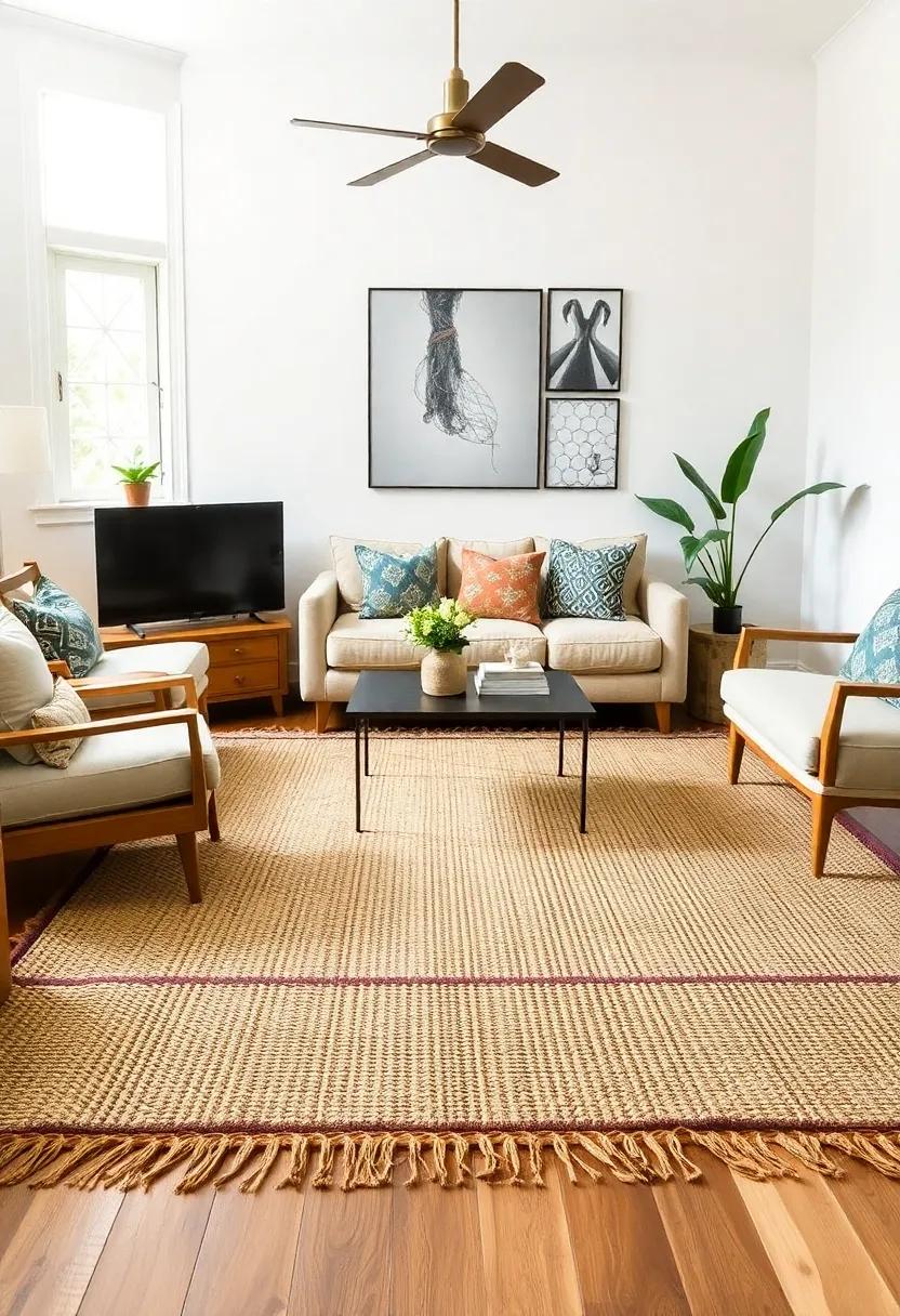 Implement layering through rugs, like a large jute rug topped with a smaller patterned one, to add warmth and depth