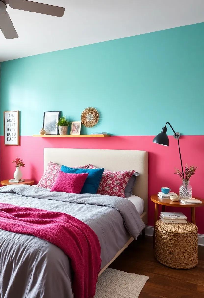 Inject a burst of energy into your bedroom with a vibrant color-blocked accent wall, transforming a dull space into a lively⁤ focal point. choosing bold, contrasting colors not only adds visual interest but also creatively defines different ⁤areas within your sanctuary. Consider dividing the wall with sharp horizontal or vertical lines,or even playful geometric shapes to make a daring statement. This approach plays beautifully with‌ eclectic decor, allowing you to switch accessories as your mood changes. Pair your color-blocking efforts with light fixtures and textiles that echo the chosen hues, ⁣creating a cohesive yet ​dynamic environment.