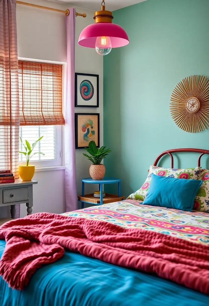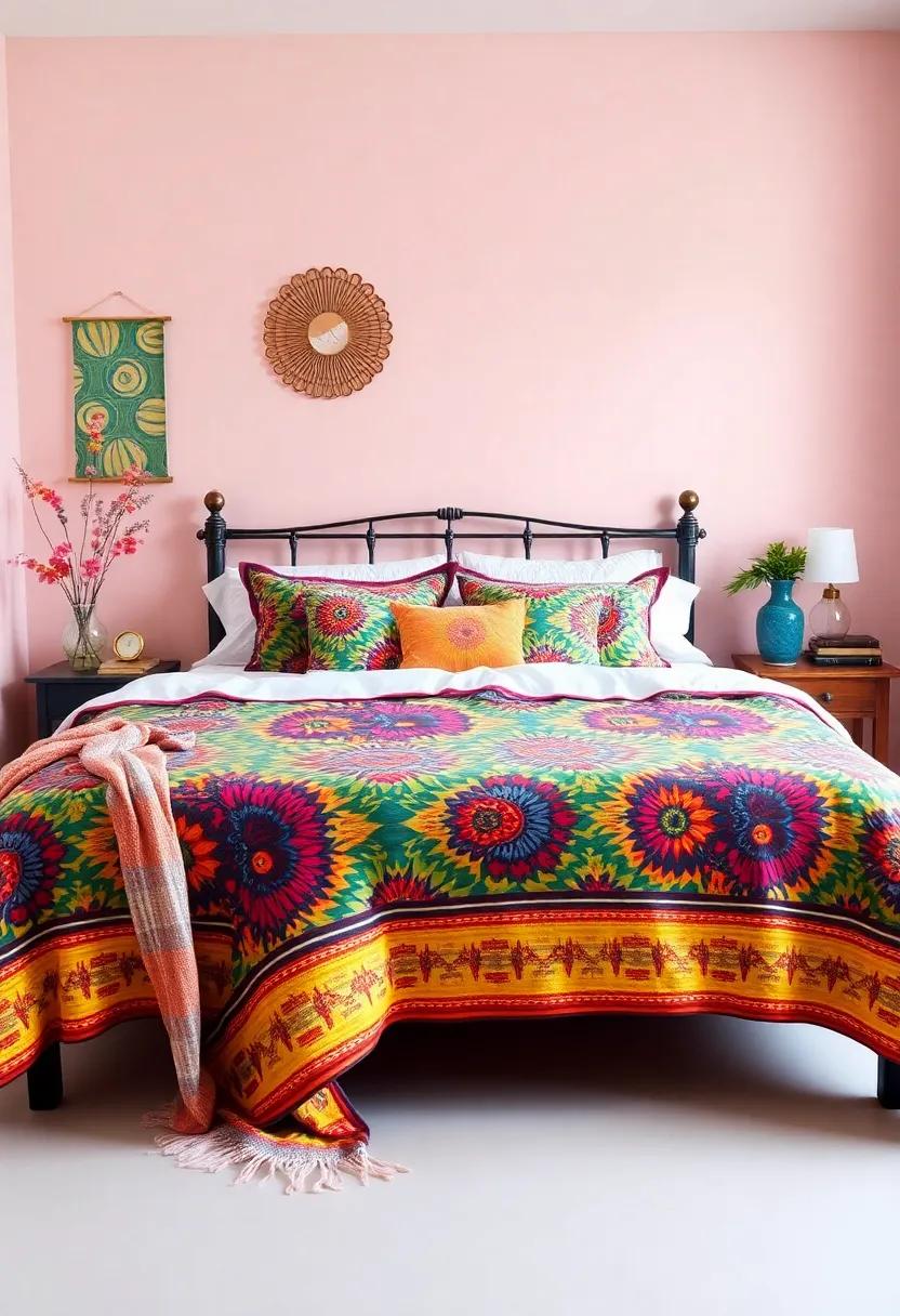 Colorful Bedspread: Swap out your bedding​ for a bold, colorful bedspread that becomes the centerpiece of your room and sets a playful tone