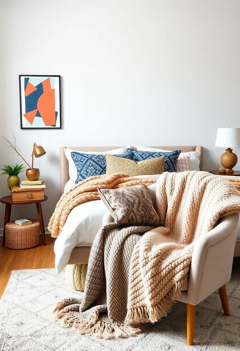 Textured Throws: Drape plush, textured throws over your bed or chair for added comfort and a cozy, layered look