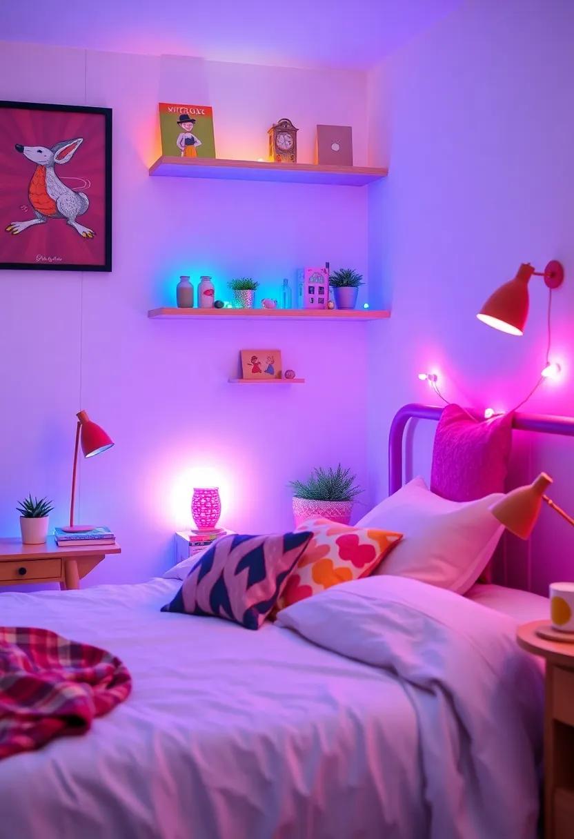 Whimsical Addressable LED Strip Lights: Add colorful LED strip lights around your bed or shelves to create a dynamic ambiance that can change ‌with your mood