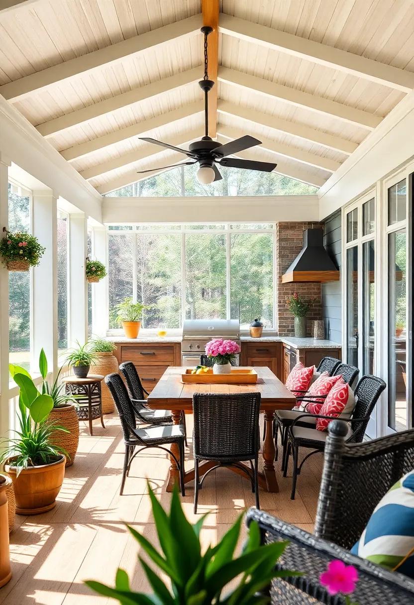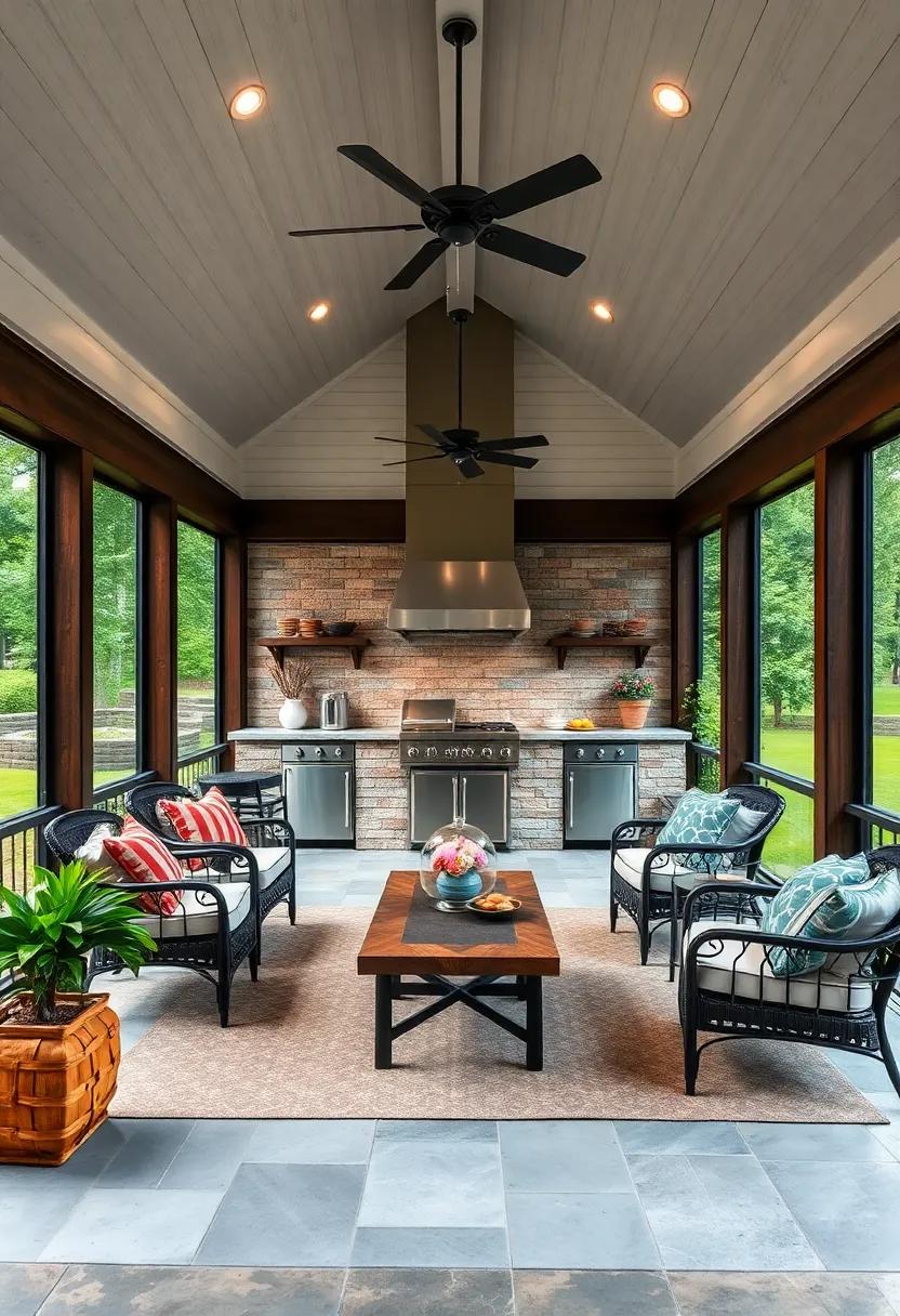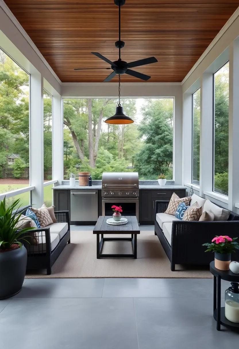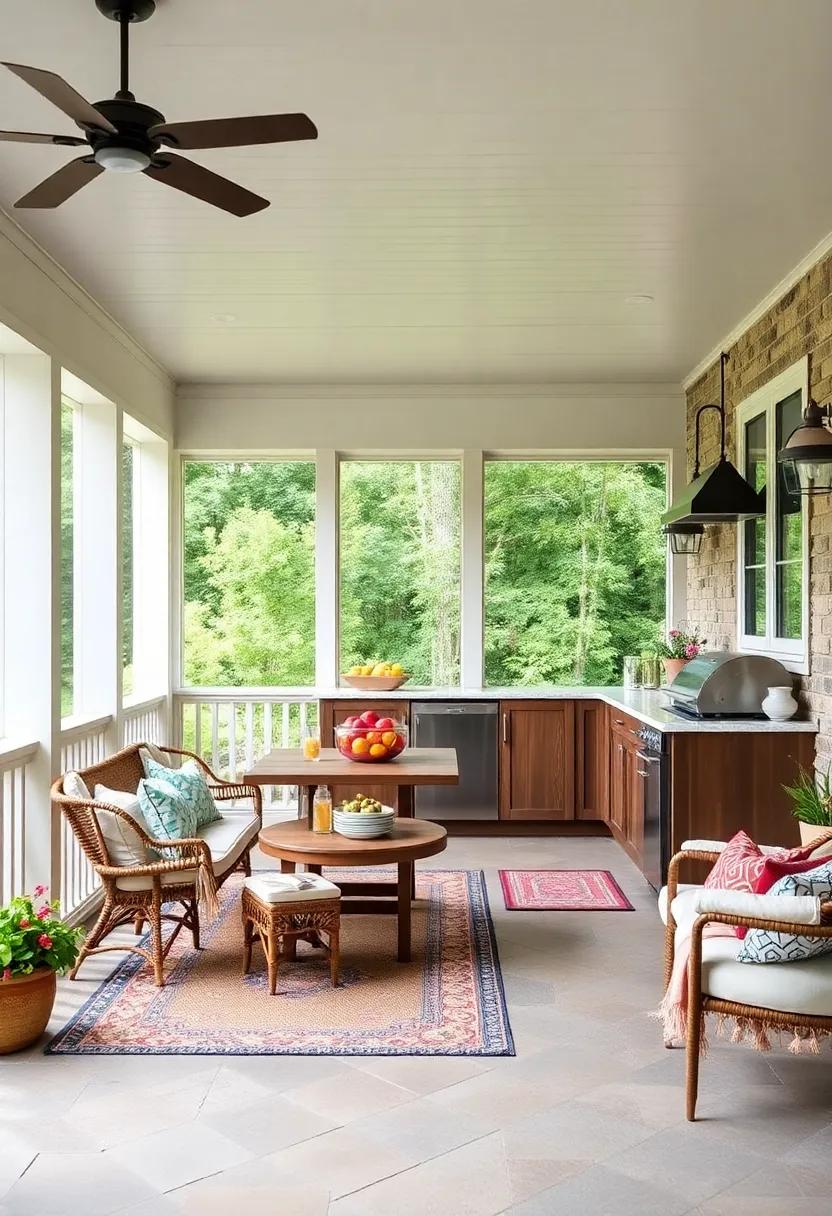 Creative Crafting Corner: A screened porch designed for relaxing and crafting, complete with a handy outdoor kitchen that encourages snack breaks during creative sessions