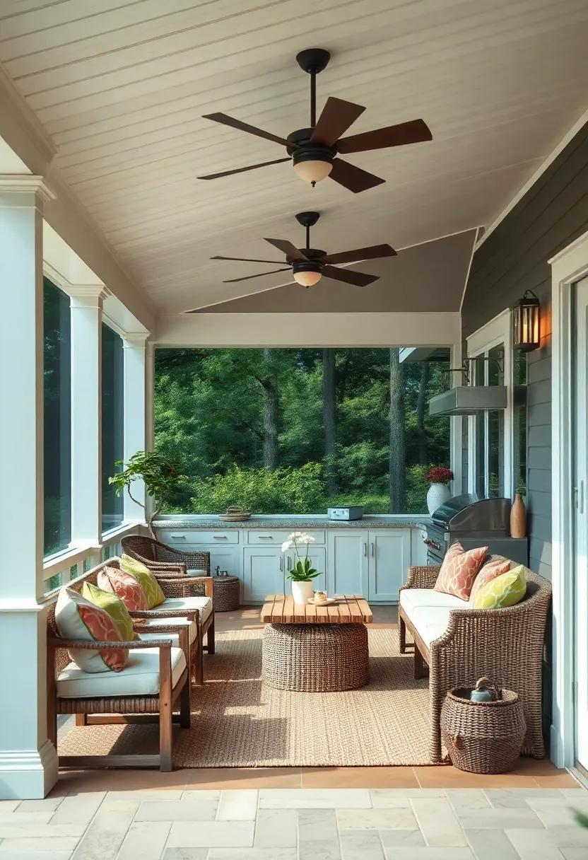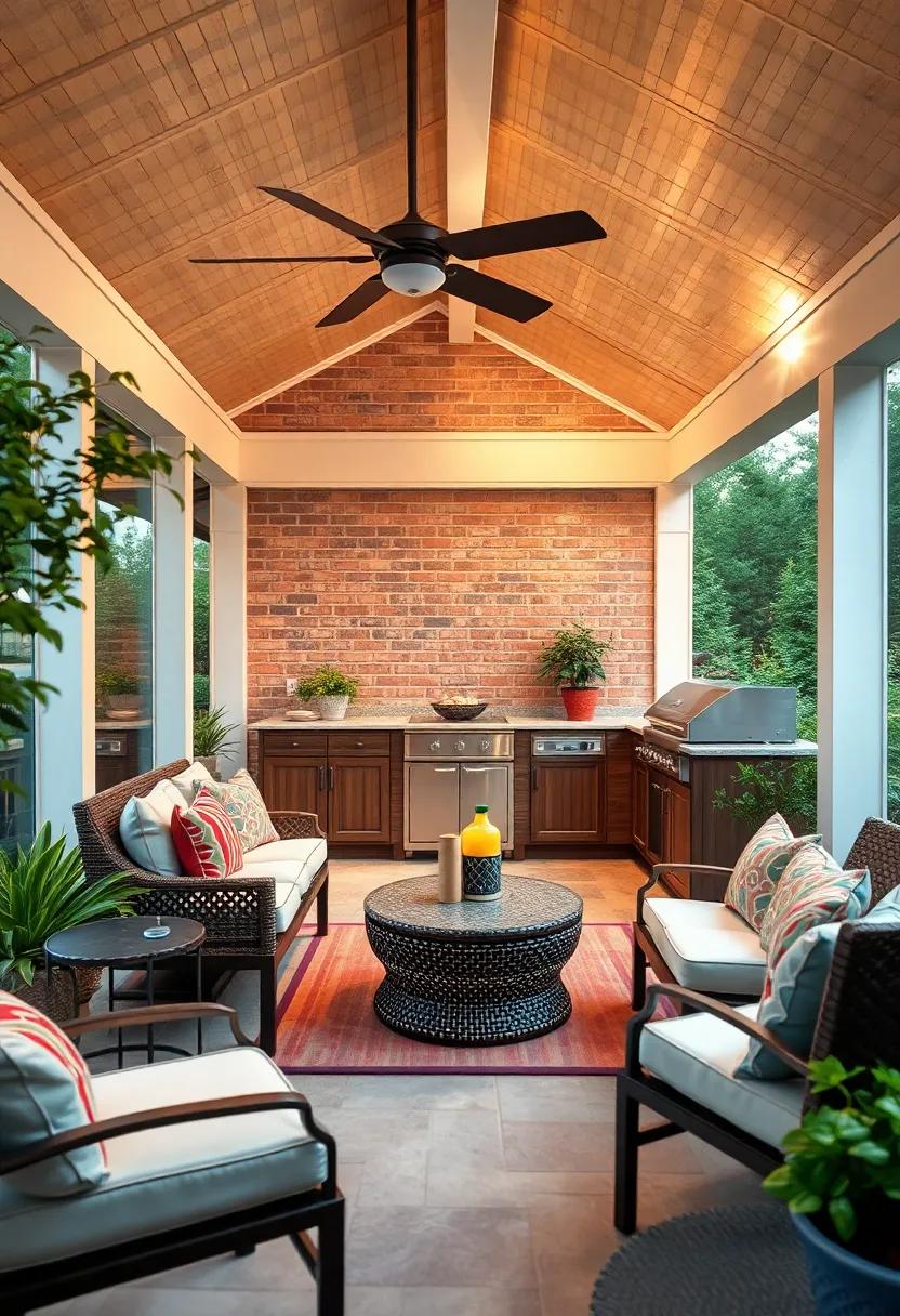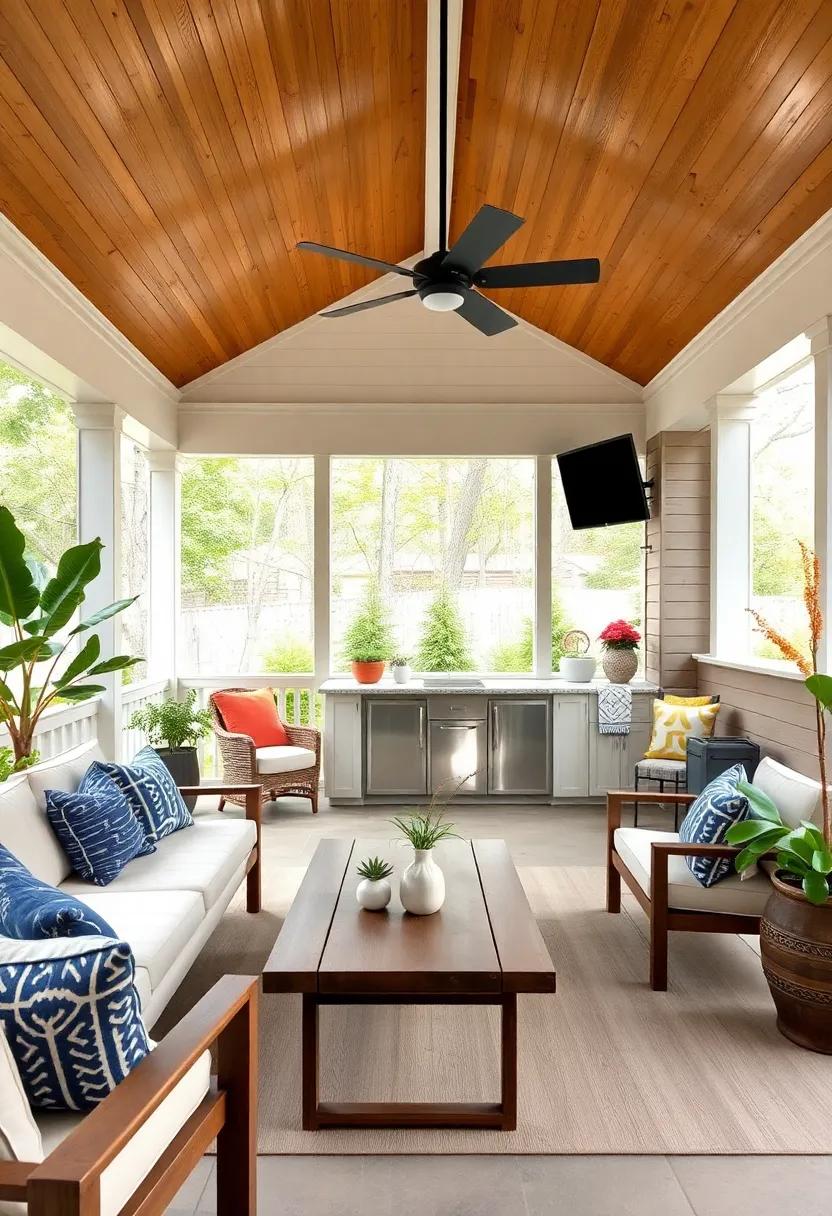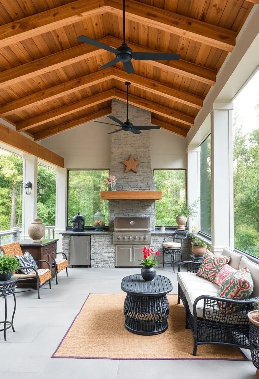 Creative Crafting Corner: A screened porch designed for relaxing and crafting, complete with a handy outdoor kitchen that encourages snack breaks during creative sessions