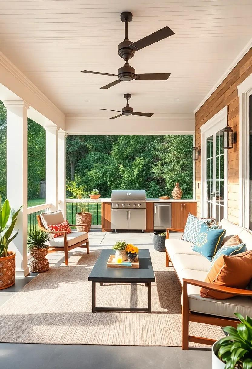 Sun-Drenched Escape: A light-filled porch layout features an open outdoor kitchen, where sunshine and fresh air amplify the joy of outdoor dining