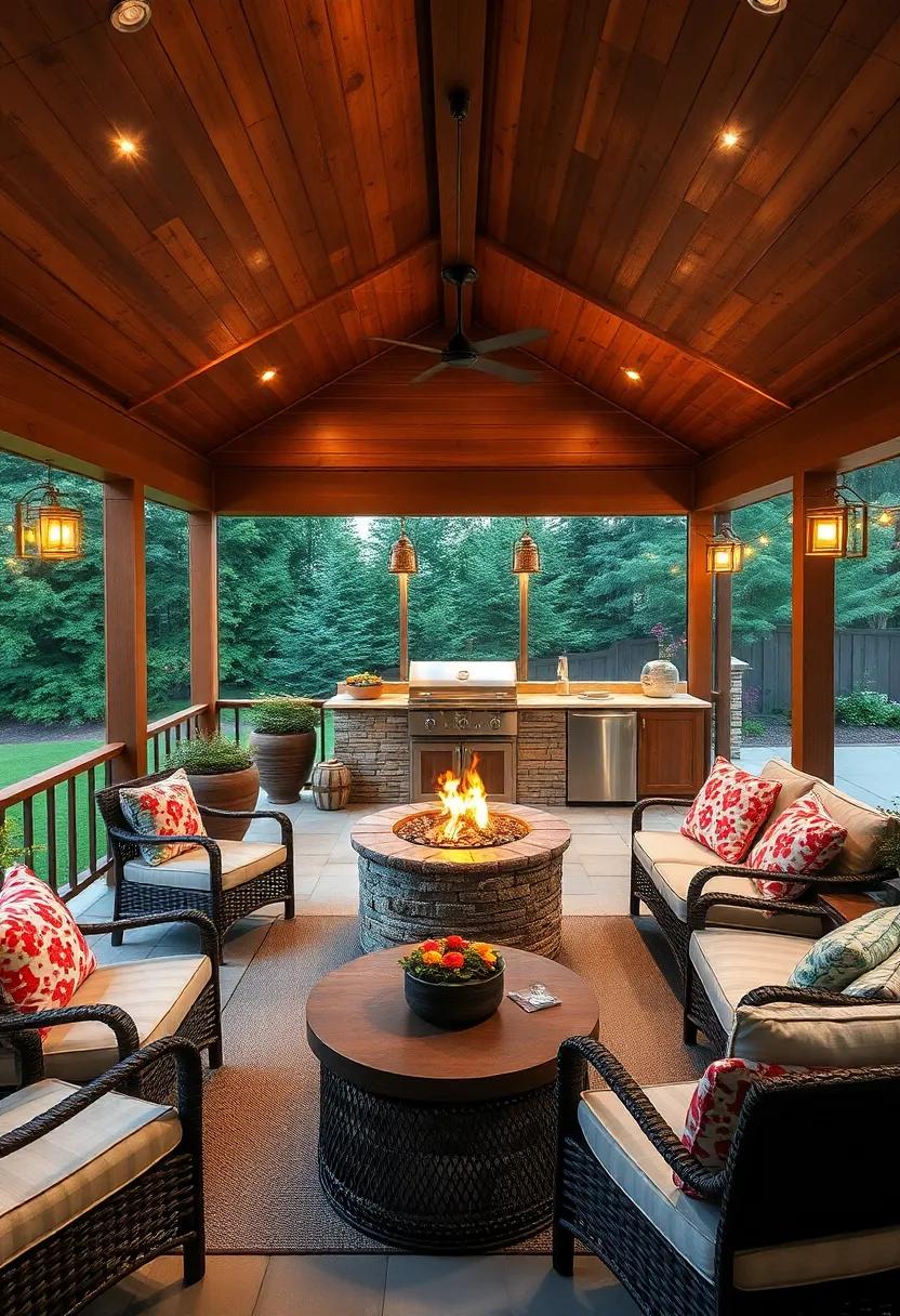A well-thought-out design incorporates not just a cooking station but also ample seating arrangements for guests to enjoy a languid evening. Comfortable armchairs can be strategically placed around the fire pit, complemented by side tables for cool beverages and plates full of appetizers.To elevate your outdoor dining experience, consider a table crafted from natural materials that blend seamlessly with the outdoors. Keep essentials at hand by designing a compact bar area nearby, stocked with your favorite mixers. This setup not only fosters delightful culinary experiments but also transforms ordinary evenings into unforgettable gatherings filled with laughter, warmth, and delicious flavors.