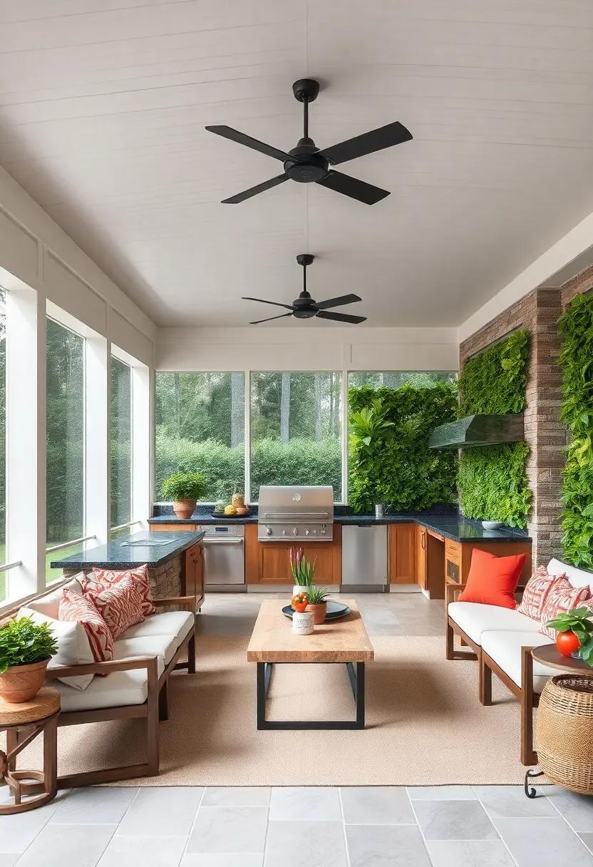 Transform your outdoor culinary experience with an innovative kitchen design that blends seamlessly into nature. A living wall not only enhances the aesthetic appeal of your kitchen but also contributes to the air quality, making your space more inviting while promoting sustainability. Incorporating elements such as reclaimed wood, natural stone, and ceramic tiles creates a rustic, eco-friendly vibe that harmonizes with your outdoor surroundings. Here are some key features to consider: