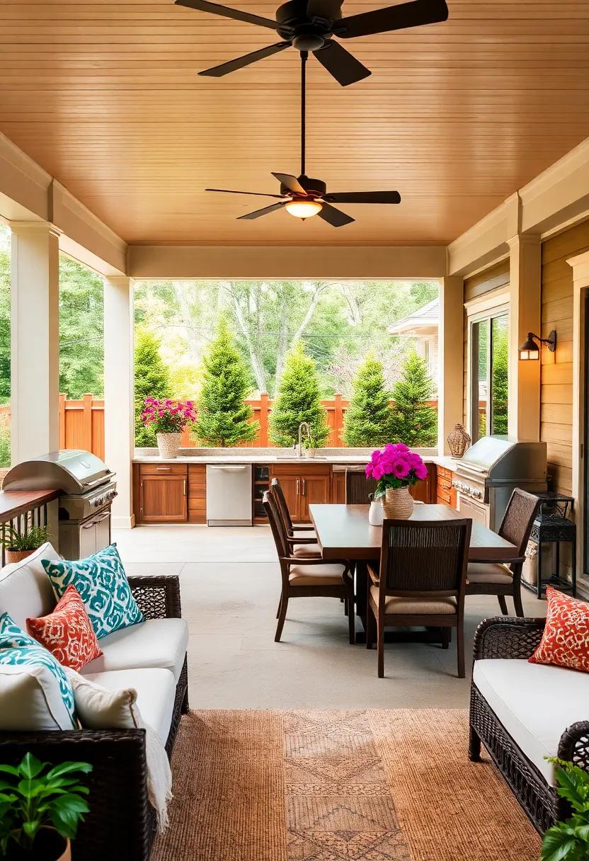Bohemian Haven: An eclectic mix of patterns and vibrant colors paired with a uniquely styled outdoor kitchen reflect an artistic spirit,inviting creativity and relaxation