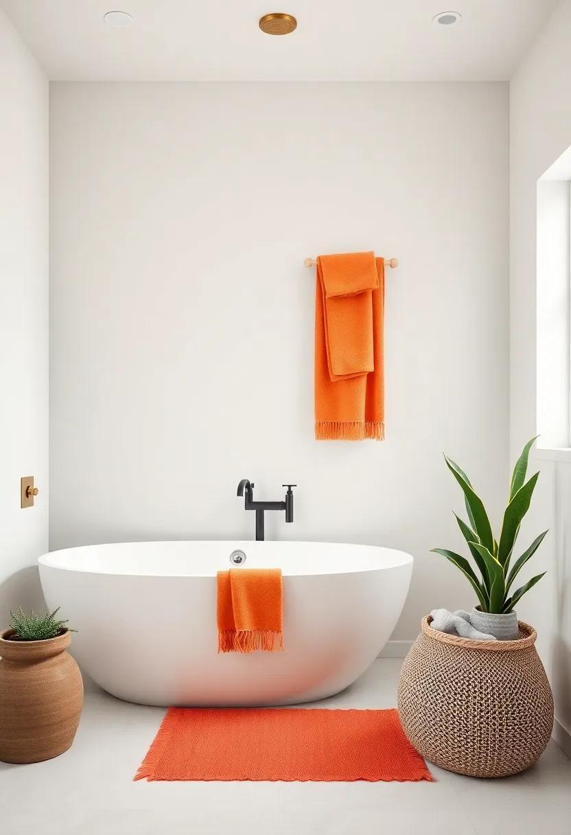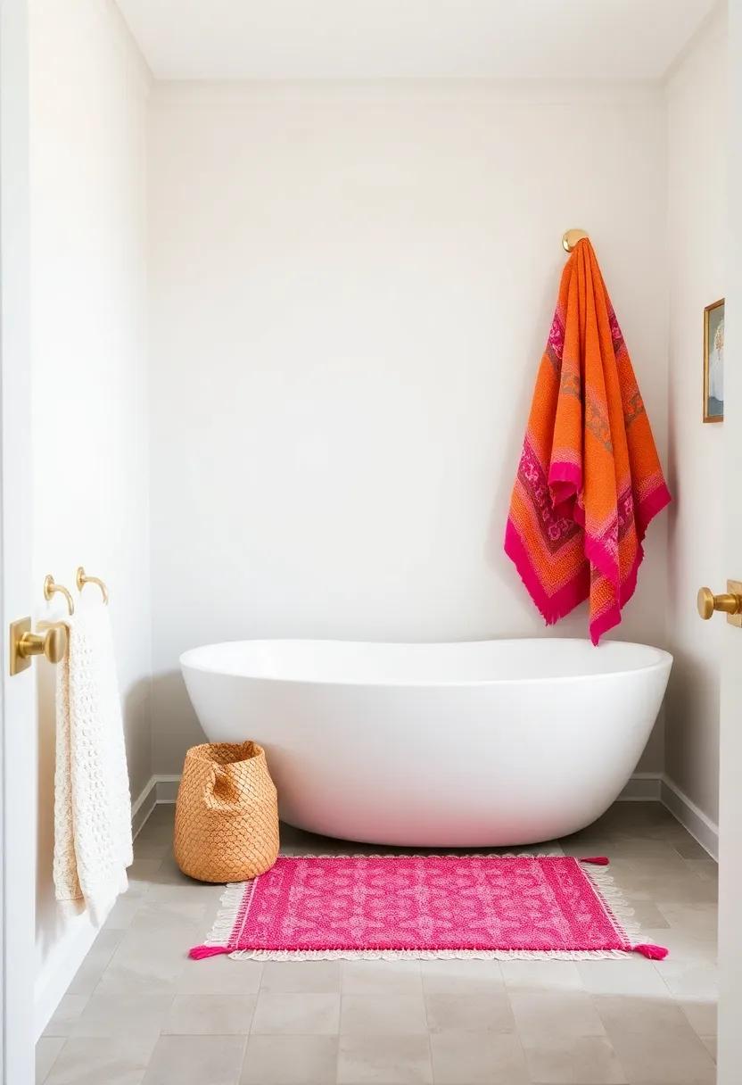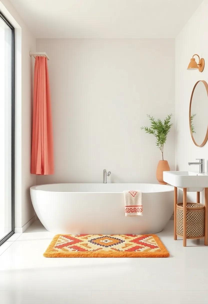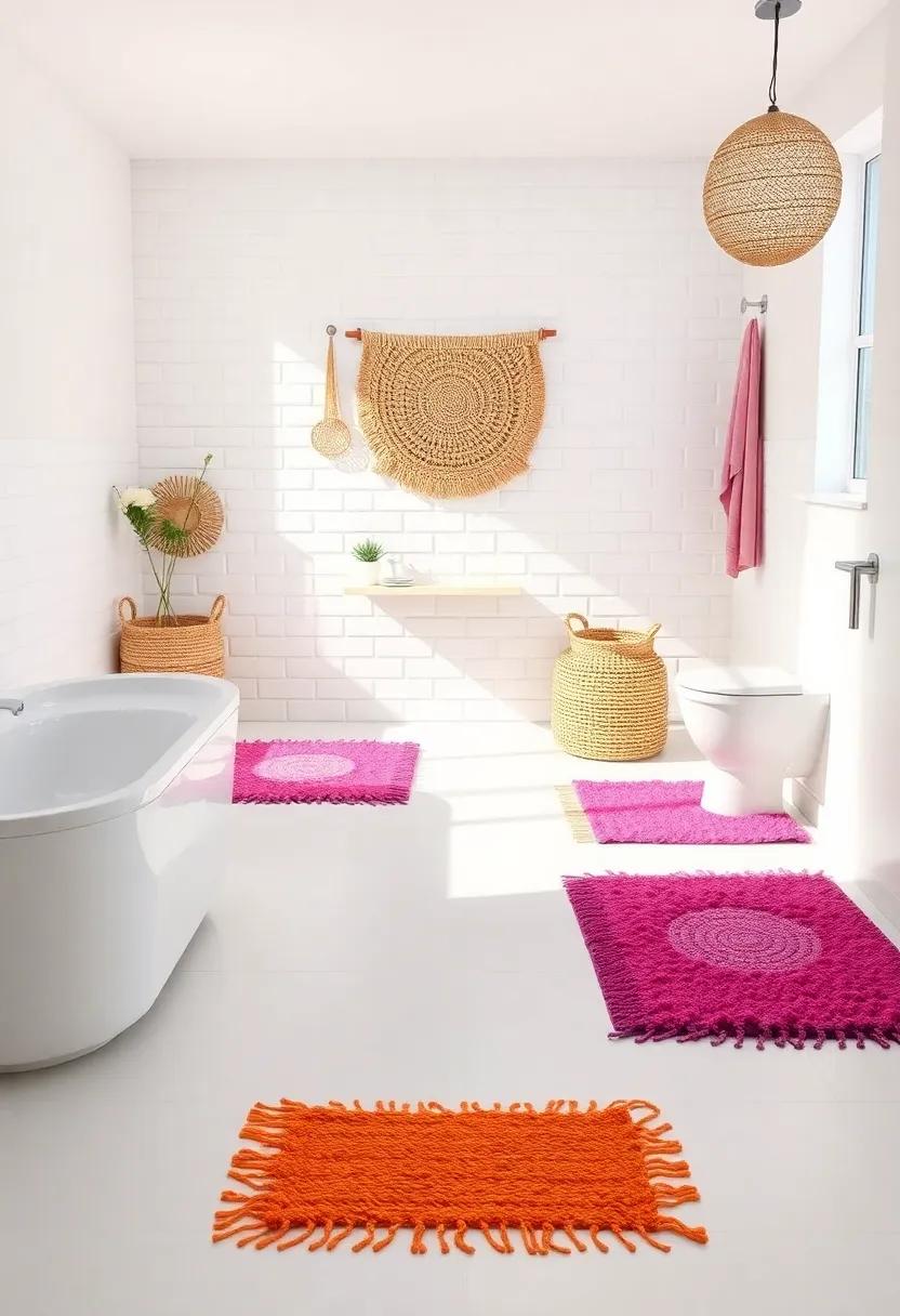 Brightly Colored Mats: Use vibrant bath mats that bring warmth underfoot, contrasting beautifully with a light-colored floor