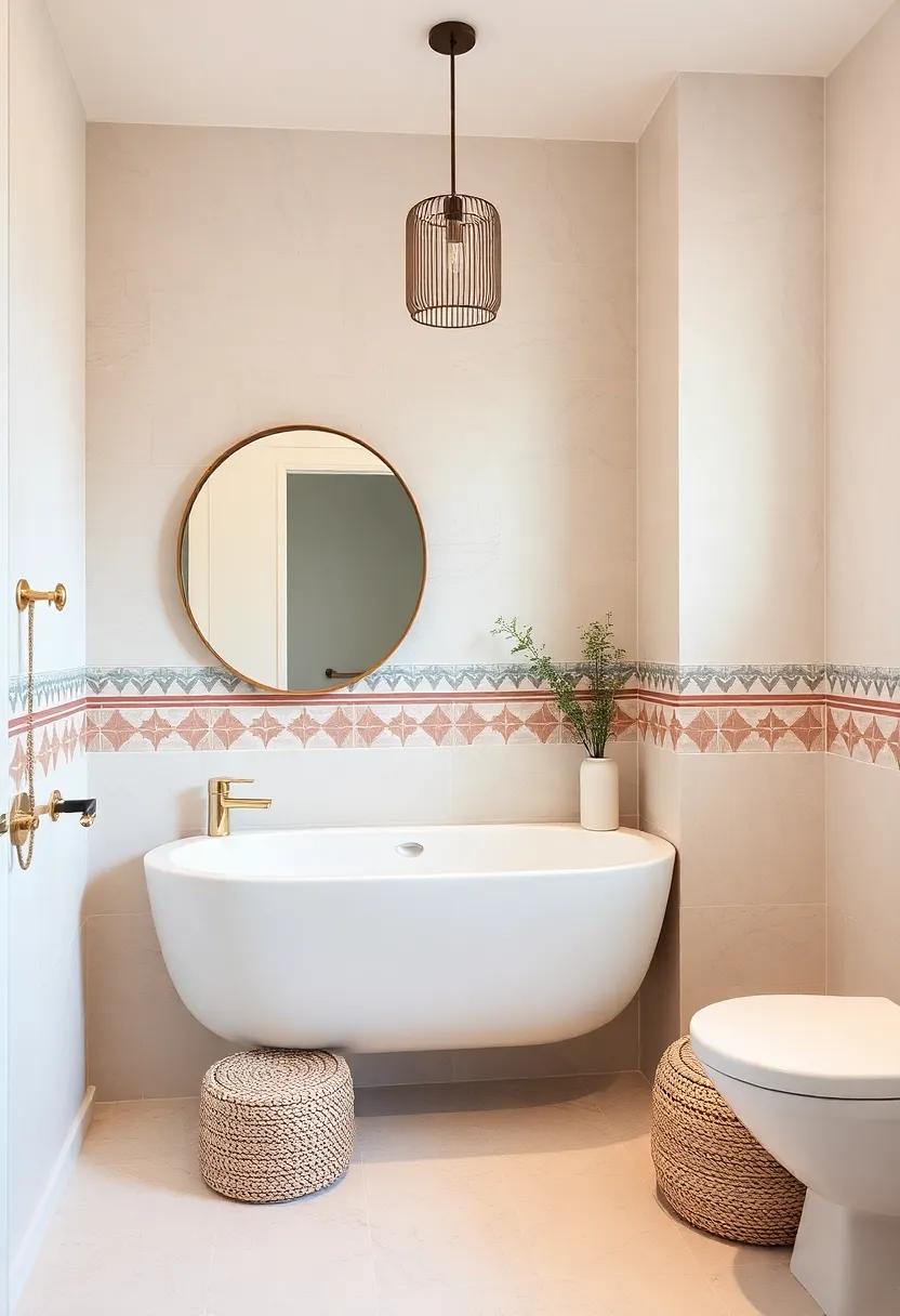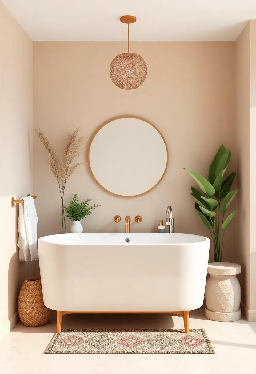 Embrace Earthy Tones: Start with a base palette of soft beiges, whites, and muted greens to create a soothing backdrop for your boho bathroom
