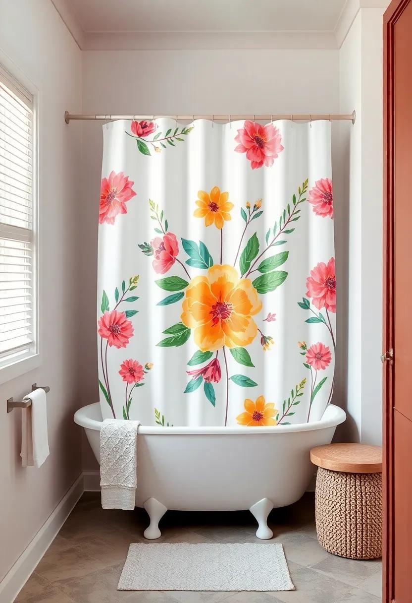 Playful Shower Curtain: Opt for a shower curtain adorned with botanical blooms or geometric patterns in lively hues to enhance your space’s character