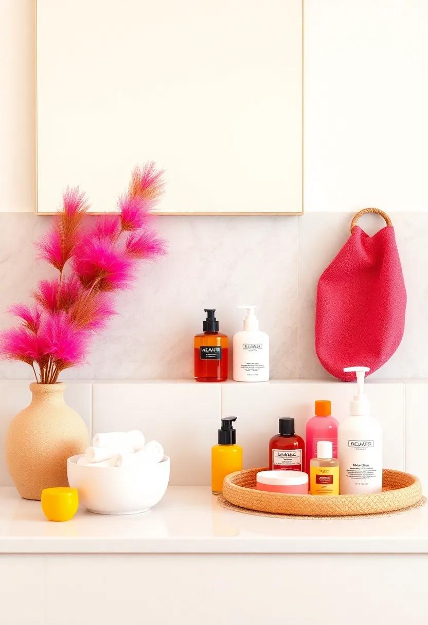 Elevate your vanity’s aesthetic by selecting a variety of vibrant skincare bottles and beauty essentials that not only serve their purpose but also add eye-catching flair. Consider using bold shades like coral, turquoise, and emerald green to juxtapose against neutral backgrounds, creating an inviting space. You can even incorporate textured elements, such as macrame organizers or wood trays, to cradly display your products while adding an earthy, bohemian touch.Each item can be chosen not just for functionality but also for its vibrant hue, resulting in a striking visual treat.