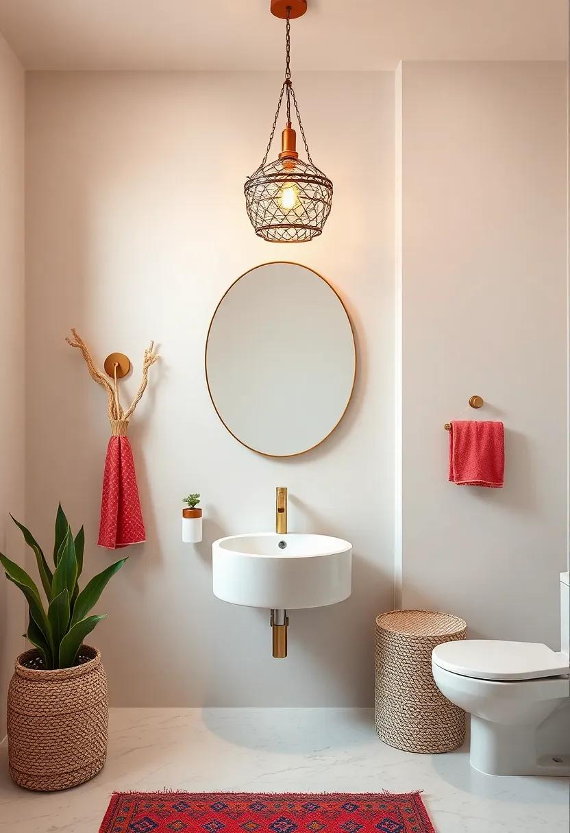 This approach not only layers light but also creates varying levels of brightness for different tasks—highlighting mirrors for daily routines or softening the glow for relaxation. Embrace the transformative power of lighting to weave together your bohemian aesthetic with warmth and a splash of color, inviting a harmonious atmosphere into your serene space.