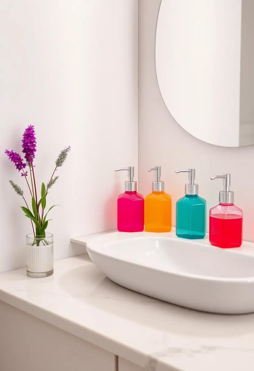 Unique Soap Dispensers: Choose small touches like decorative soap dispensers in vivid hues to bring a splash of color to your countertop
