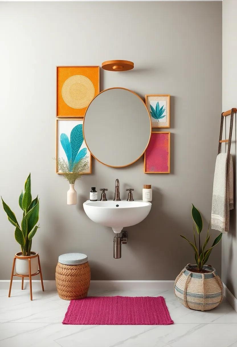 - Bold Framed Prints: Opt for abstract pieces that splash color against the neutral tones of your bathroom.