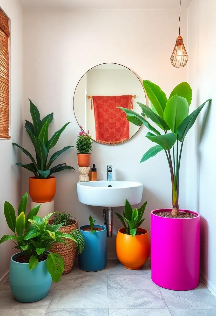 Lively Indoor Plants: Bring in greenery with colorful pots that add life and vibrancy to your serene bathroom environment