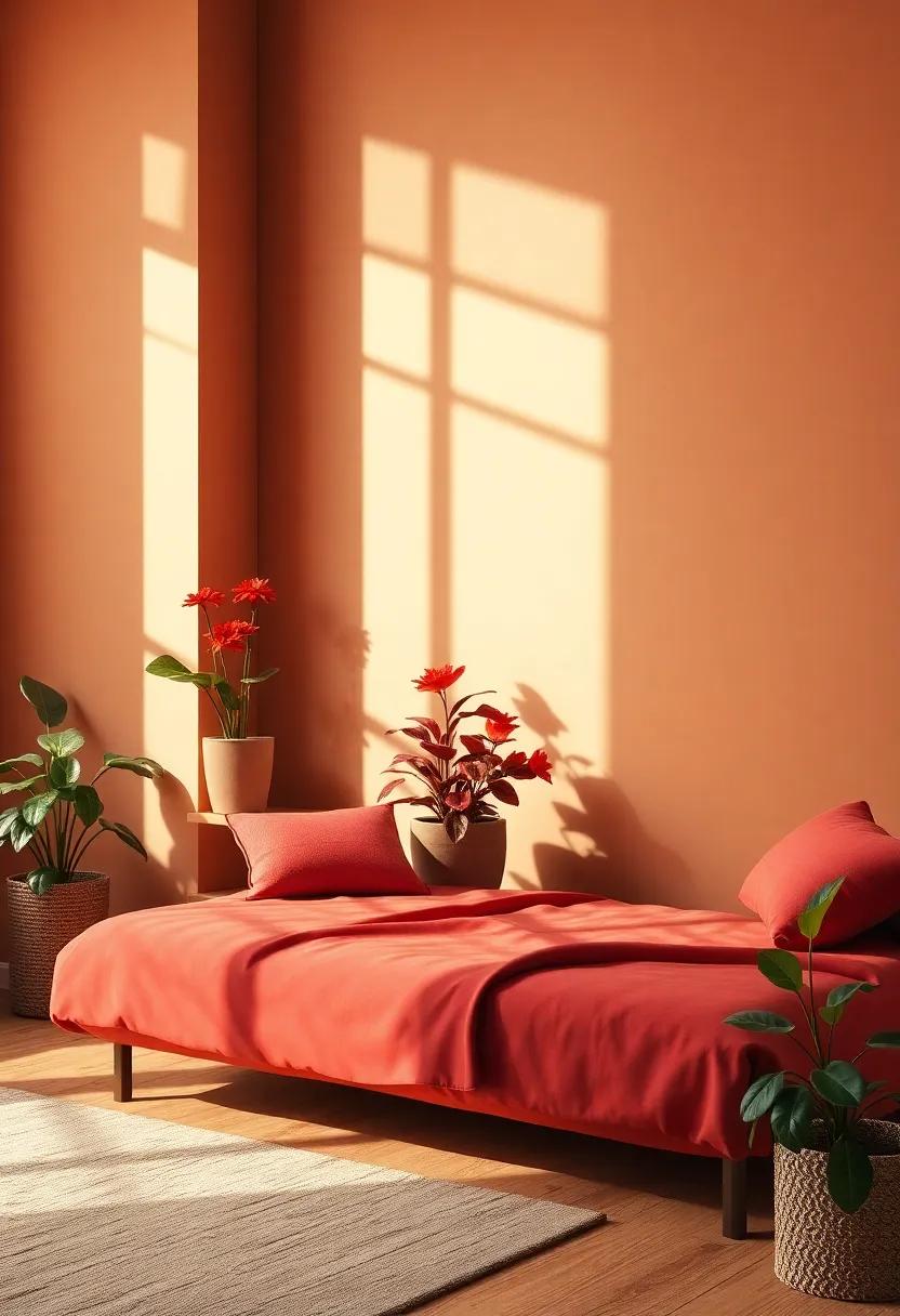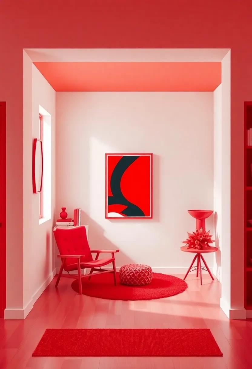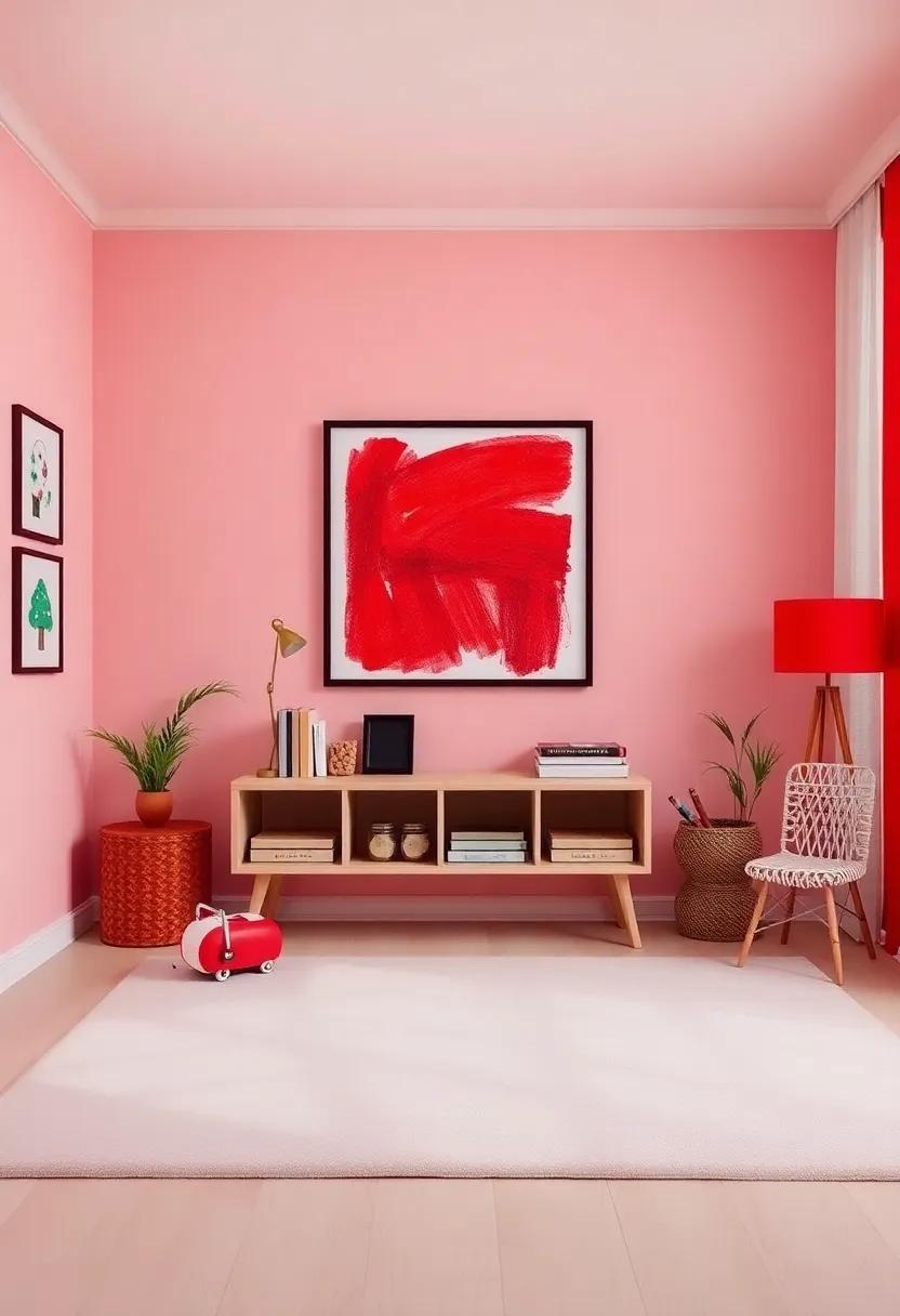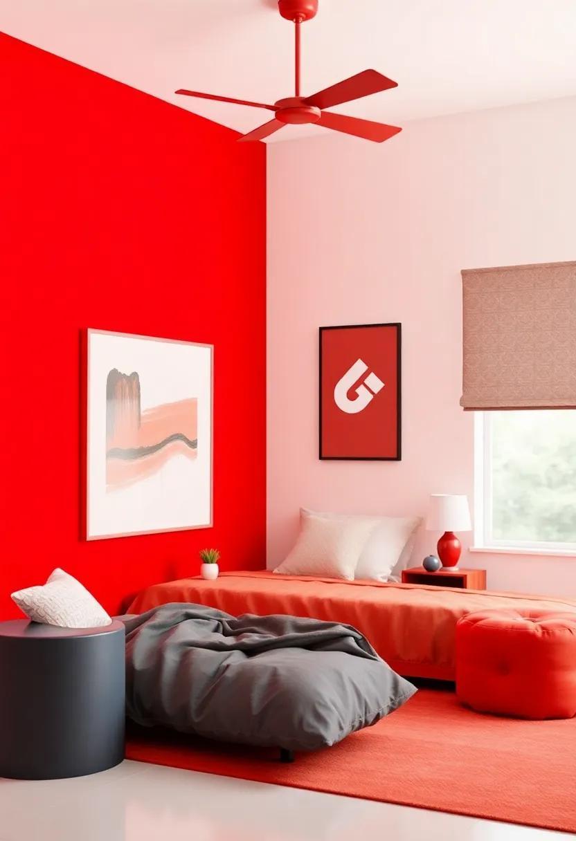 Start with a Statement Wall: choose a vibrant red shade for one wall to serve as a dynamic backdrop, creating a focal point in the room that energizes the space