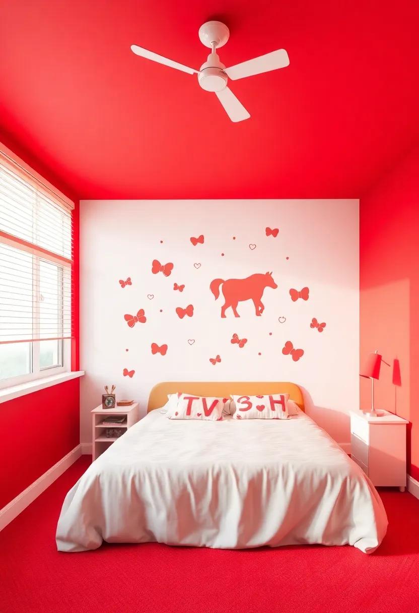 Add Interactive Wall Decals: Use removable wall decals of favorite characters or animals in shades of red to encourage creativity and make the room a lively space