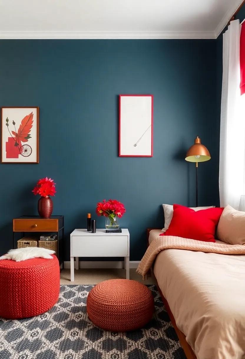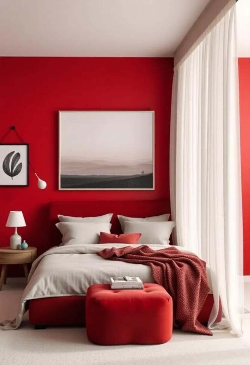 Utilize Bold Accessories: Incorporate red accent pillows, blankets, and wall art to enhance the room’s theme without overshadowing other design elements