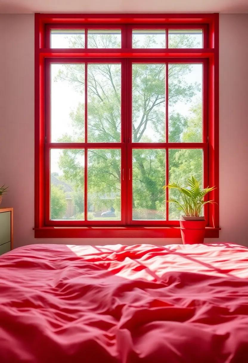 Bring in the Outdoors: Use red-framed windows or curtains that allow natural light to flood in,connecting the room with the outside world and promoting a burst of energy