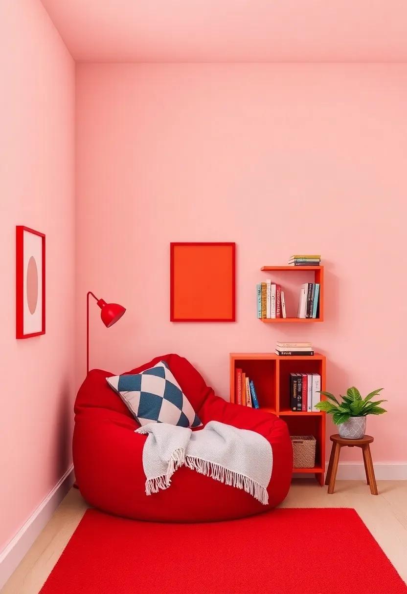 Create a Reading nook: Set up a cozy corner with a red beanbag chair and a small bookshelf, inspiring a passion for reading in a vibrant, inviting area