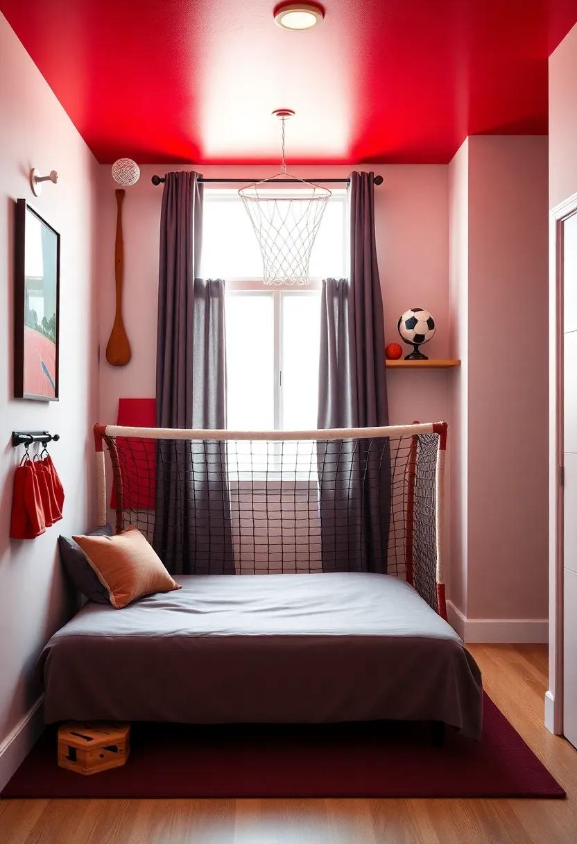 Transform a corner of the room into an energetic hub dedicated to athletic inspiration. Adorn the walls with striking red sports memorabilia—think jerseys of favorite teams, framed action shots of iconic athletes, or even a bold mural depicting a dynamic sports scene. Add floating shelves to showcase signed balls or trophies, creating a personal touch that sparks pride and motivation. This area serves not only as decor but also as a constant reminder to stay active and embrace teamwork.