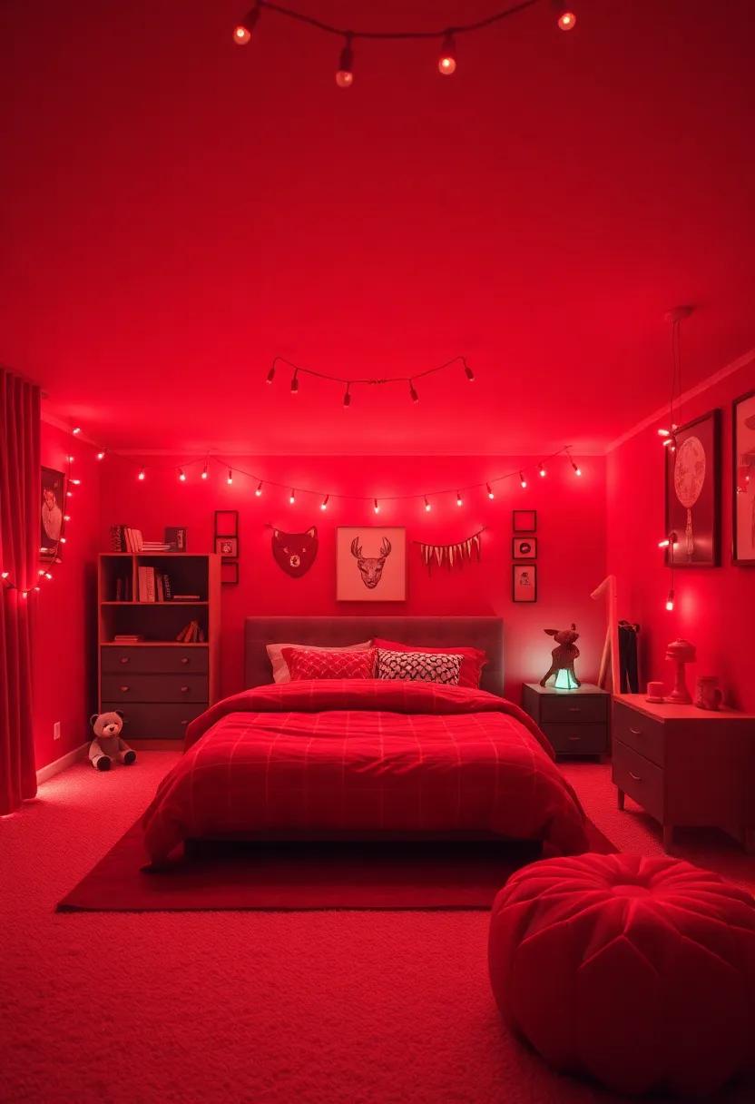 Transforming a boys’ room into an enchanting haven is all about the right ambiance. Red-themed string lights or LED strips can serve as the perfect magical touch, wrapping the room in a gentle glow that ignites the imagination. Hang strings of soft, warm red lights above the bed or along the walls to create a cozy cocoon, ideal for nighttime adventures.Consider draping them over furniture or using them to outline play areas, making every corner feel whimsical. When storytelling time rolls around, these lights can turn an ordinary space into an extraordinary realm, setting the stage for epic tales of adventure.
