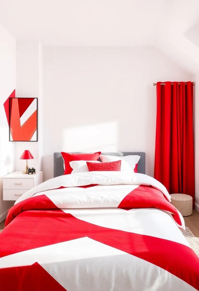Select Dynamic Bedding: Choose bedding that features bold geometric designs in red and white, promoting energy and excitement in their nightly retreat