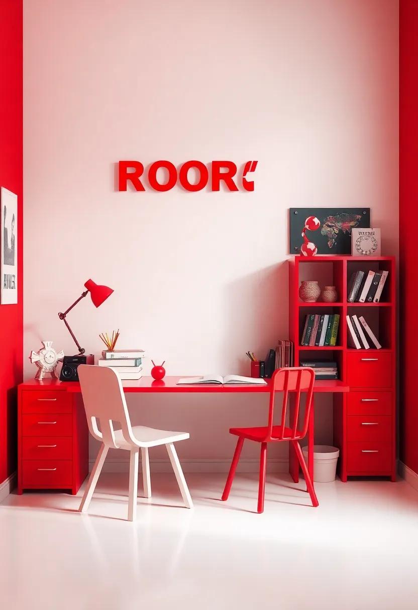 Play with Furniture Color: Mix in furniture pieces with red accents, such as chairs or bookshelves, to keep the color cohesive without overwhelming the room
