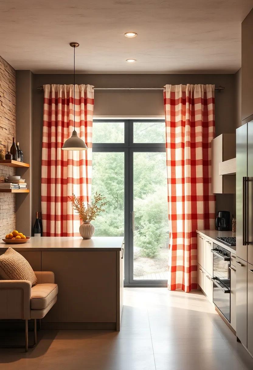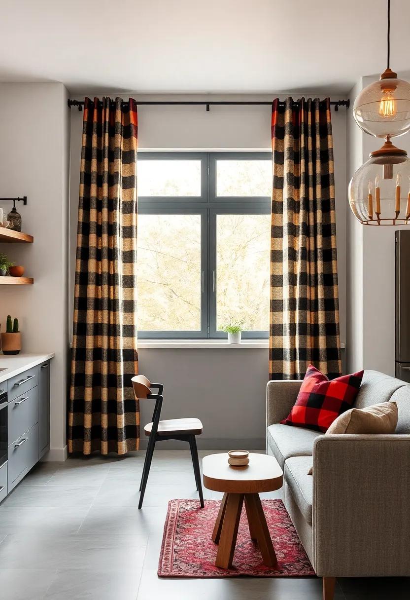 Cozy Checks: Buffalo plaid curtains that evoke a cozy cabin feel, enhancing warmth and comfort in the kitchen environment