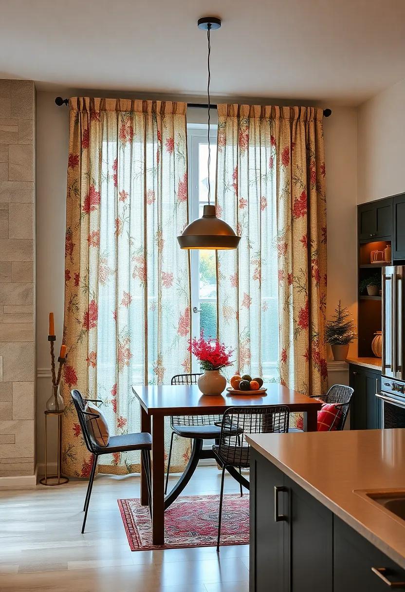 When selecting curtains, hint at vibrancy with textured patterns, such as geometric weaves or bohemian motifs, to create a lively ambiance. Explore how these layered textures can complement your kitchen’s color palette and overall aesthetic, ensuring your space feels both catered and stylish.