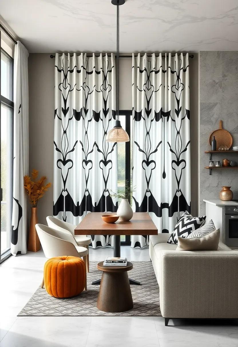 Monochrome Magic: Black and white curtains with bold graphic prints that create a striking focal point without overwhelming the space
