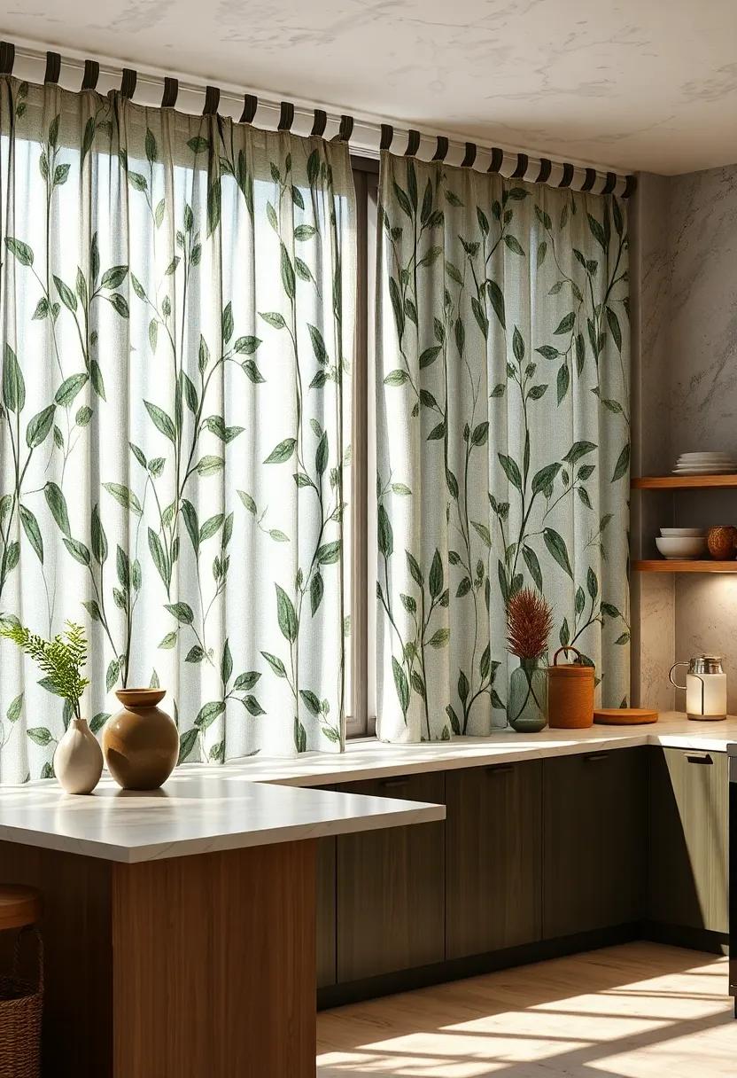 Transform your kitchen into a tranquil haven with curtains that echo the beauty of the great outdoors. Nature-inspired prints bring the essence of lush greenery right into your home, where the patterns of leaves and trees harmonize with your culinary space. Consider opting for sheer curtains adorned with delicate leaf motifs, allowing soft sunlight to filter through while creating a gentle ambiance.Alternatively, bold, oversized tree prints can make a striking statement, grounding the room in a natural aesthetic that fosters a sense of calm and connection with nature.