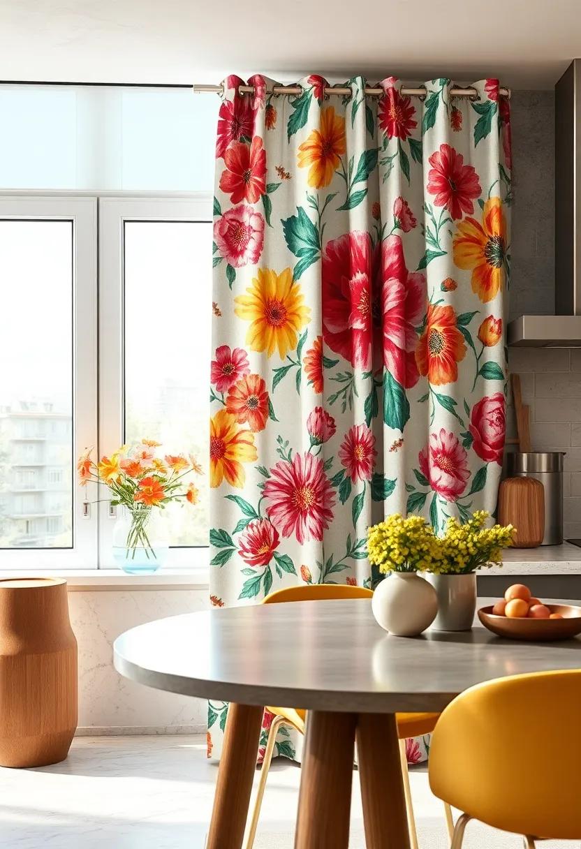 Vibrant Bouquets: Floral print curtains in bright hues to inject life and personality into your kitchen, ideal for spring and summer