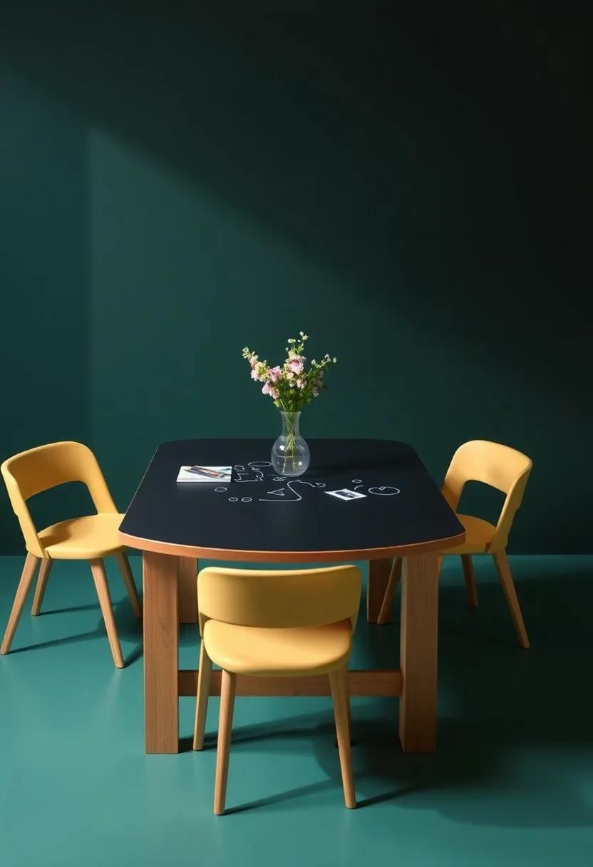 The Artsy Chalkboard Dining Table – Embrace your creativity with a dining table that features a chalkboard surface, inviting spontaneous doodling and easy cleanup