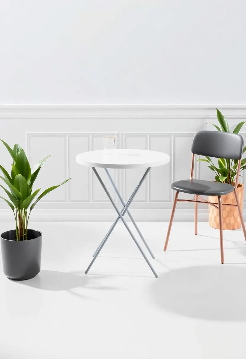 The real beauty of this table lies in its versatility and ease of storage. When not in use, it can be quickly folded away, making it incredibly practical for those moments when space is at a premium.Whether you’re hosting friends for brunch or enjoying a quiet evening with a book, setting it up is a breeze. Customize your experience further with stylish seating options such as folding chairs or stools; the playful combination enhances both aesthetics and utility.Here’s a quick table highlighting some top features: