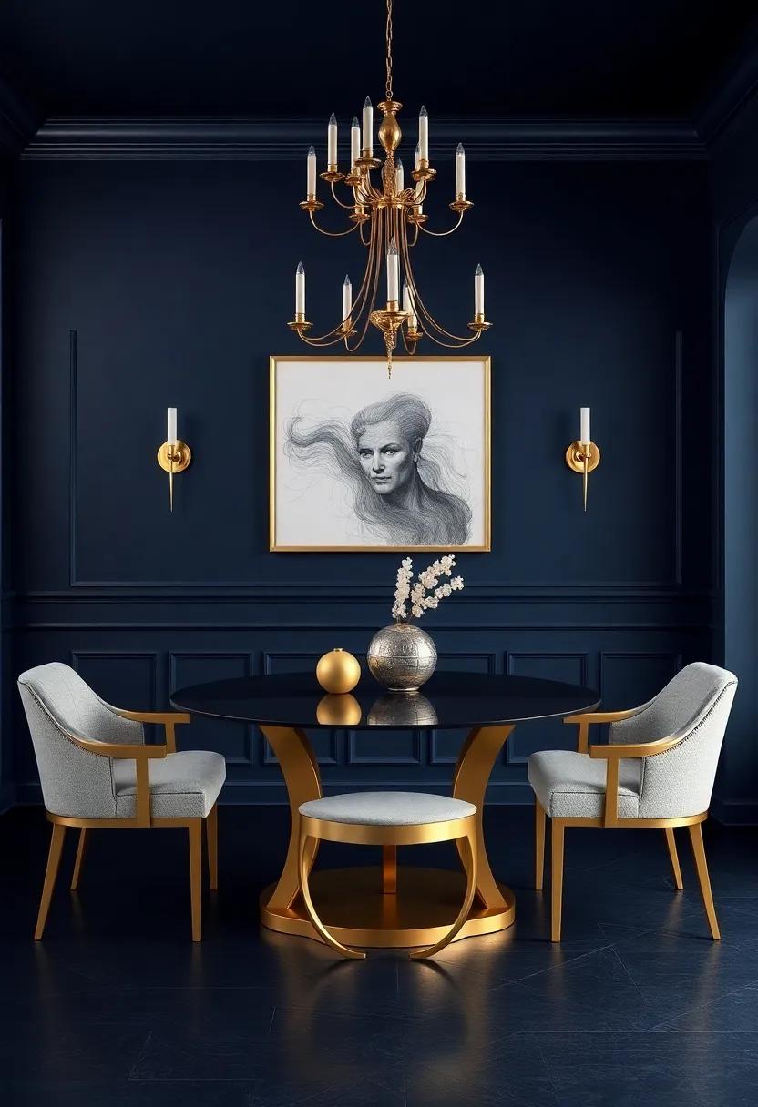 Transform‍ your dining ⁣space into a ‌retreat ‍of elegance by ⁢choosing ⁣deep navy for⁣ your walls.This ‍bold shade instills​ a sense‌ of calm‍ while⁣ exuding a sophisticated charm⁣ that makes it ‌perfect for formal gatherings.To ⁤bring out the richness ⁢of the navy tones, ​incorporate gilded accents throughout​ the room. Consider the⁢ following elements to enhance the overall regal ​ambiance: