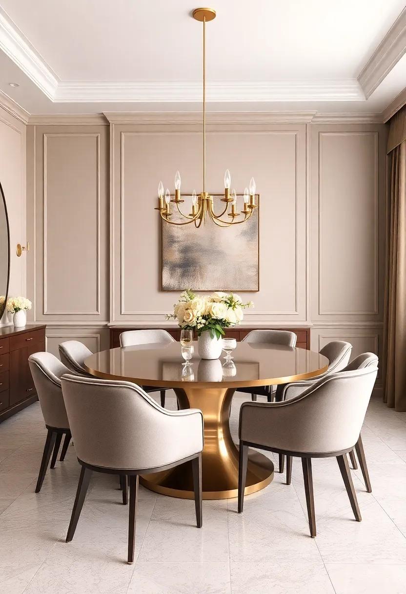 For‌ a dining room that whispers ‍sophistication,​ embrace the warmth ⁣of taupe intertwined with delicate metallic accents. This palette creates a serene environment⁢ that feels both inviting and refined.Imagine walls ​cloaked in a⁢ soft‍ taupe hue, which serves as ‍a calming backdrop, allowing the ‌tabletop decor and furnishings ​to shine.‍ Pair taupe with materials like brushed gold ‌or⁣ antique bronze to ​add an element of glamour without​ overwhelming the ⁢space. ‌You can introduce⁣ metallic⁢ finishes through light‍ fixtures, picture ‌frames, and‍ flatware, striking⁢ the perfect balance⁢ between‍ understated elegance and contemporary‌ flair.