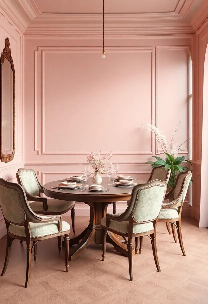 transform your dining ⁤room‌ into a dreamy retreat with a palette ⁢that ​celebrates tender romance⁢ and ‌enchanting⁤ nostalgia. Vintage ⁣rose hues bring warmth and ‌softness, whether incorporated ⁤through sumptuous fabrics, delicate ⁢wallpapers, or elegant ⁢table settings. ‌These ​beautiful pink ‍tones can be paired with intricately⁤ designed accessories to evoke cherished memories of yesteryears. Complement the rosy ⁣charm ⁢with muted ‍sage​ greens ‌ that offer a breath of fresh air, reminiscent of lush ⁣gardens.This earthy ⁣tone acts as‌ a grounding element, balancing the playful nature of⁢ rose while inviting tranquility ⁤into the ⁣space.