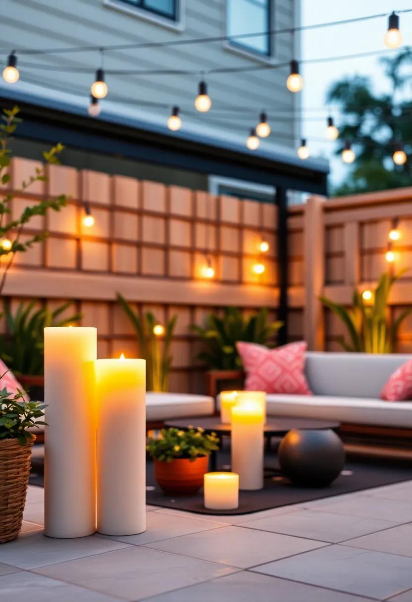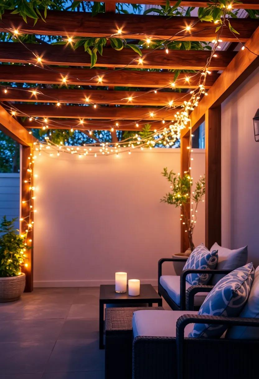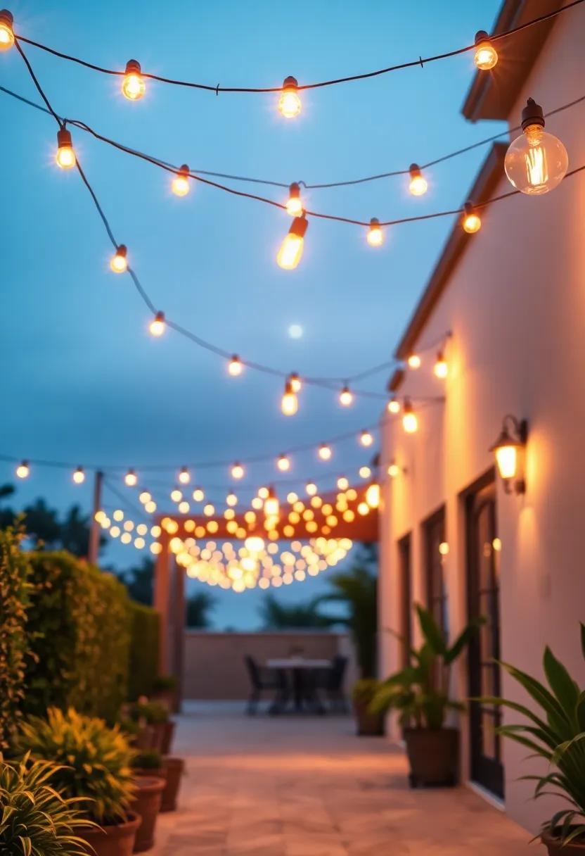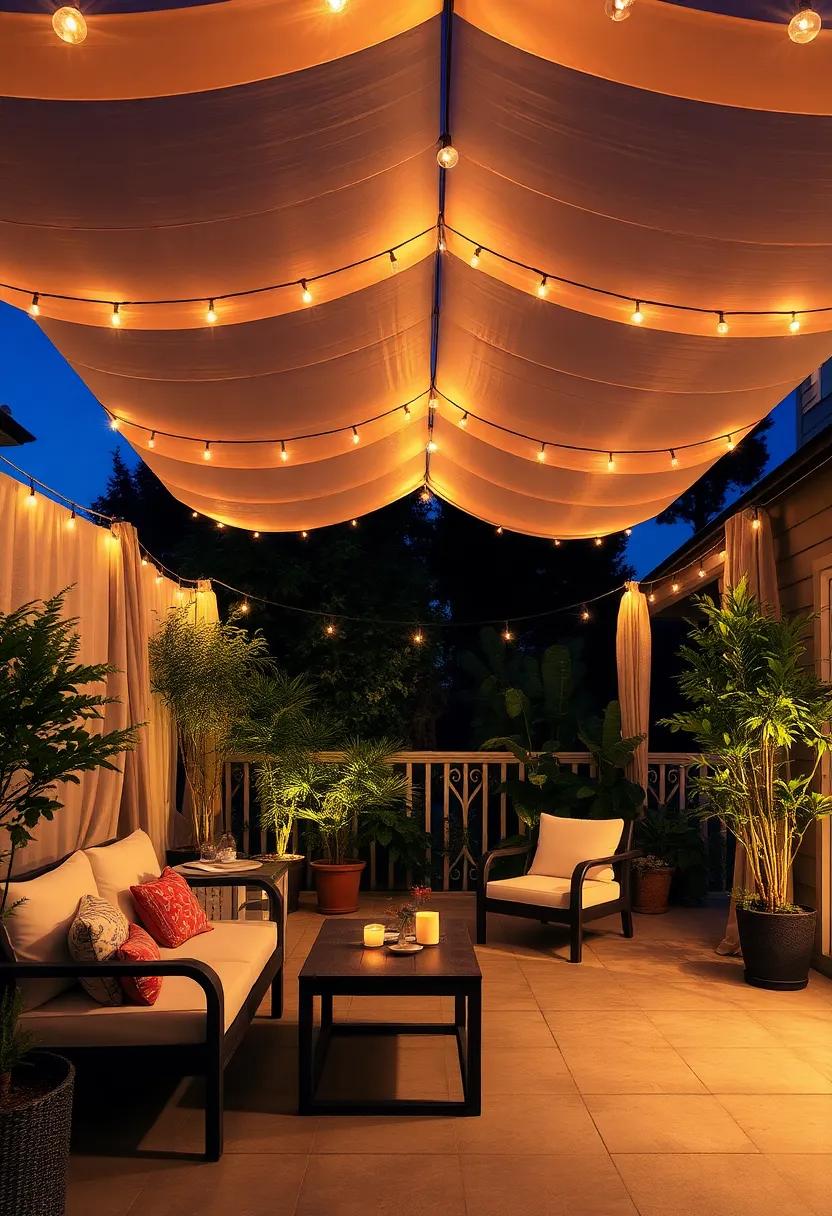 Canopy Lights: Create an enchanting atmosphere with lights suspended from a fabric canopy, transforming your patio into a romantic hideaway