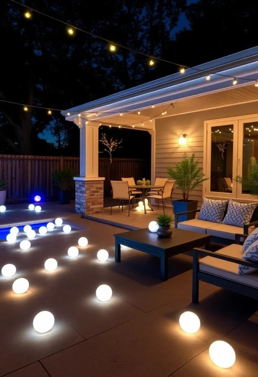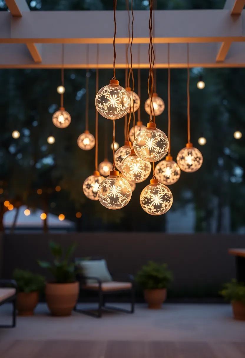 Decorative String Balls: Hang spherical string lights in clusters from your patio’s ceiling or trees for a captivating, magical look that enchants all who visit