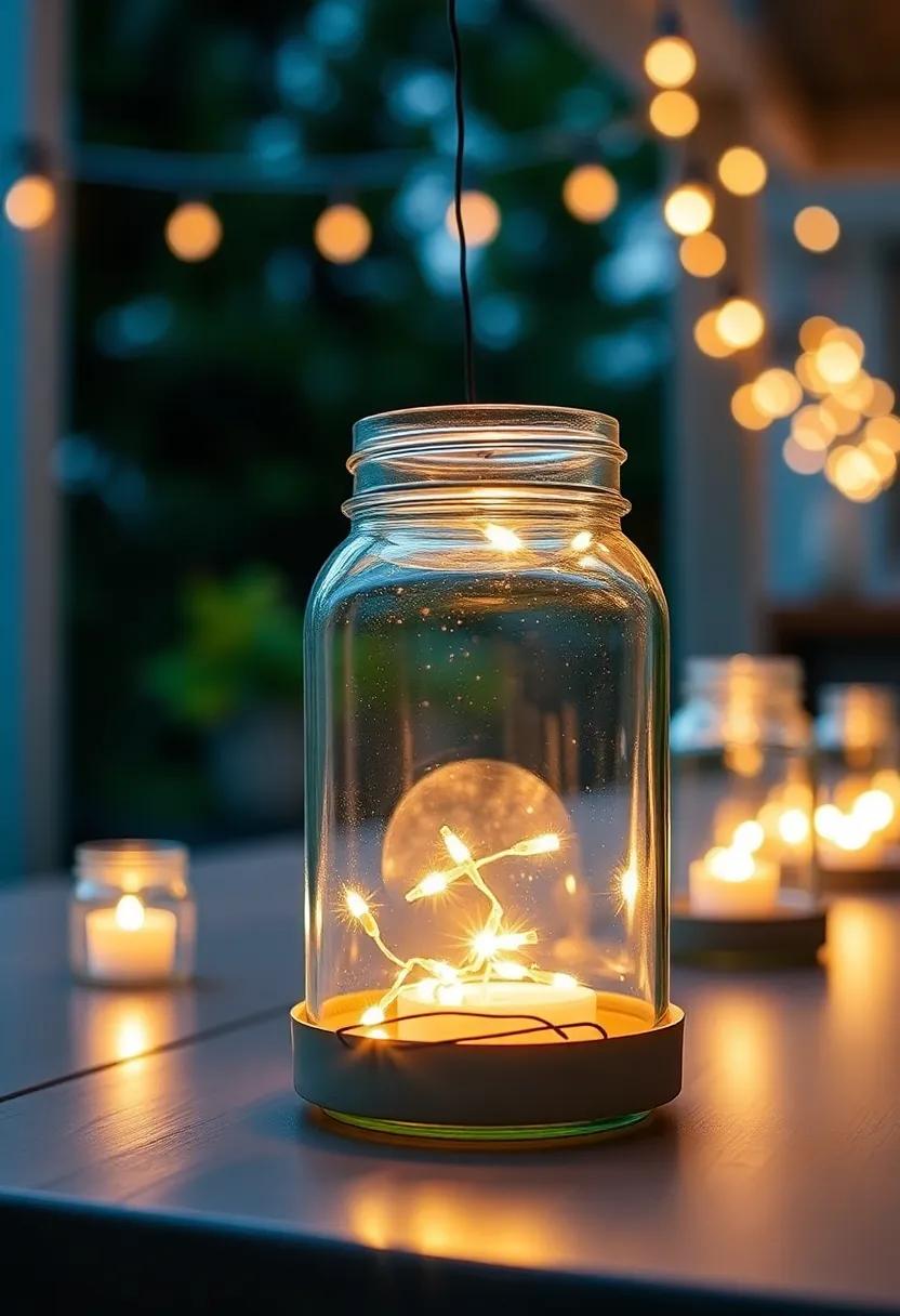 Mason Jar Luminaries: Fill mason jars with fairy lights or candles and scatter them around your patio for a charming, homemade touch that adds character and warmth