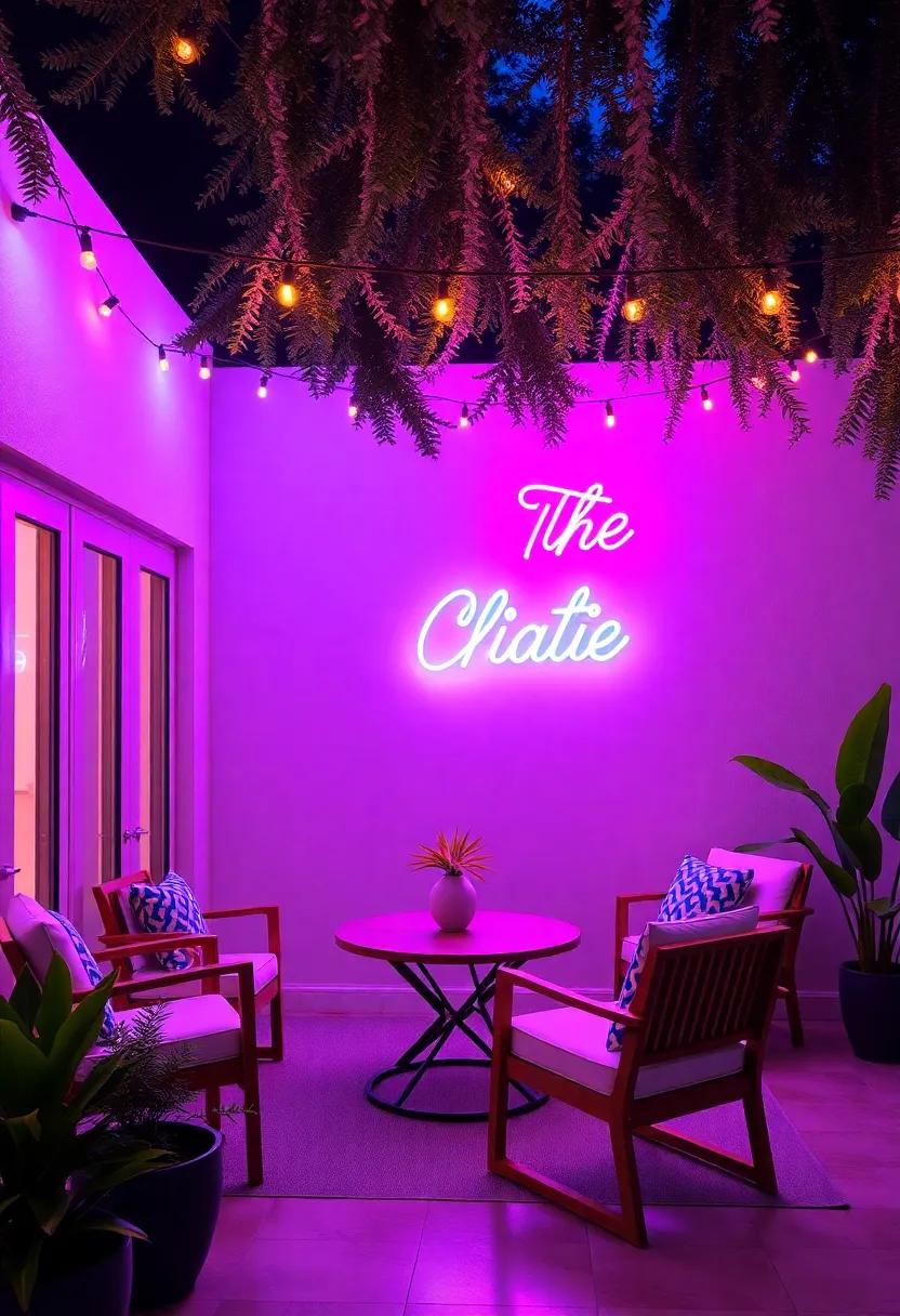 Neon Accents: Add a playful twist with neon signs that reflect your personality or theme,giving your patio a modern touch that shines brightly even in the dark