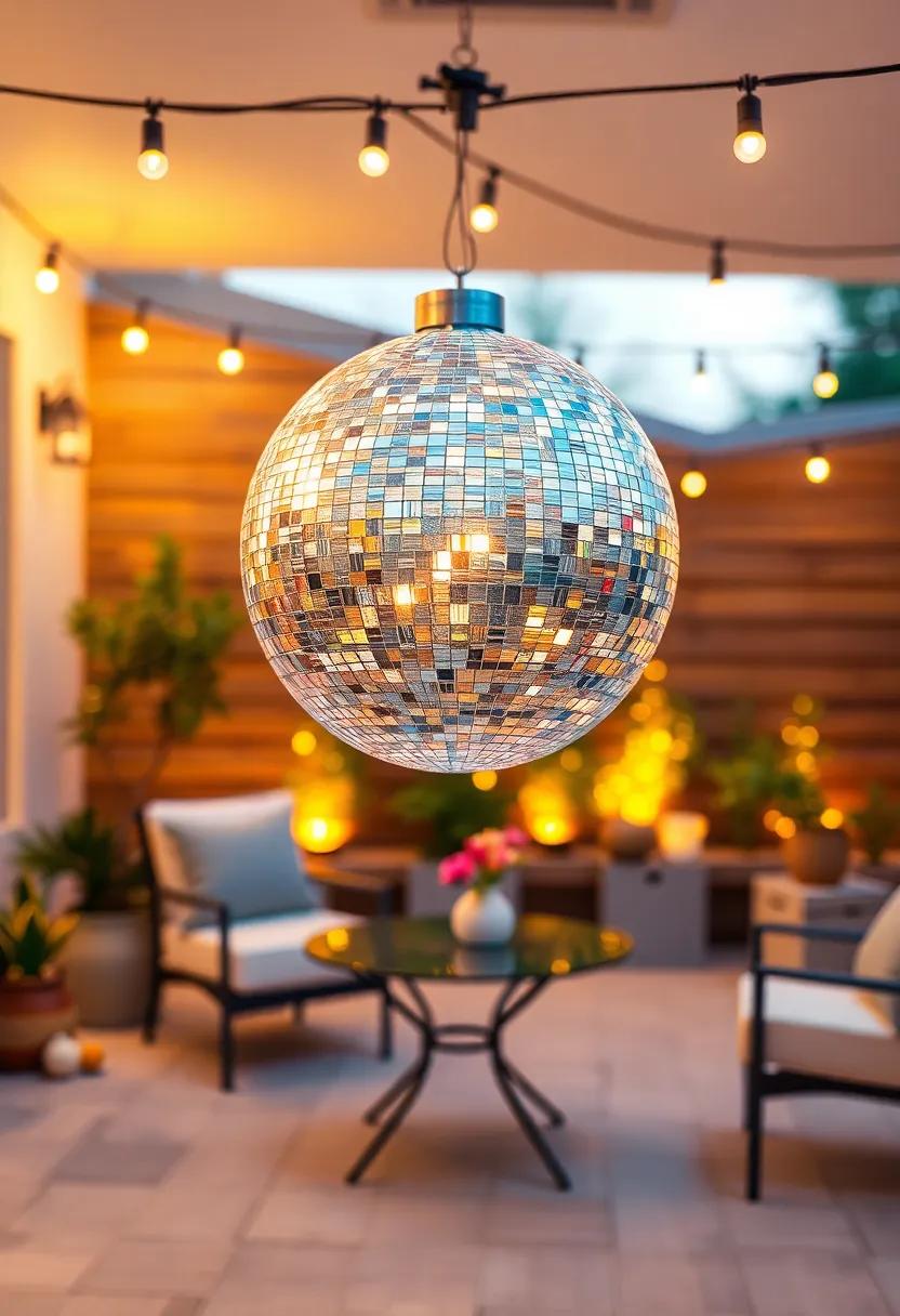 Outdoor Disco Ball: Hang an outdoor disco ball for spontaneous dance parties, as it reflects light in every direction, creating a fun and lively setting
