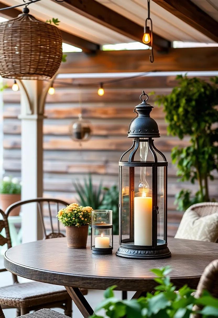 Rustic Lanterns: Introduce charm by placing vintage-style lanterns on tables or hanging them from hooks, offering soft, flickering light perfect for cozy gatherings