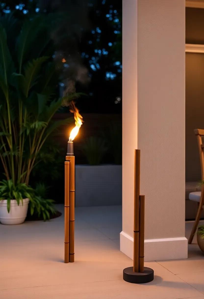twilight Torches: Set the mood with bamboo torches filled with citronella oil, providing illumination and repelling insects simultaneously for an enjoyable evening outdoors