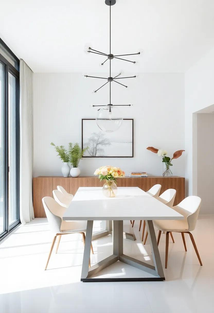 Embracing modern minimalism in your dining room creates an inviting atmosphere that encourages relaxation and connectivity over a meal. To achieve this aesthetic, focus on clean lines in your furnishings and architectural elements. Opt for a simple, rectangular dining table paired with sleek chairs that feature gentle curves, balancing functionality and elegance. Incorporate a statement lighting fixture with geometric shapes to add an artistic touch, while ensuring the overall look remains clutter-free. The integration of a few carefully selected decorative pieces, such as a monochromatic vase or minimalist artwork, can enhance the space without overwhelming it.