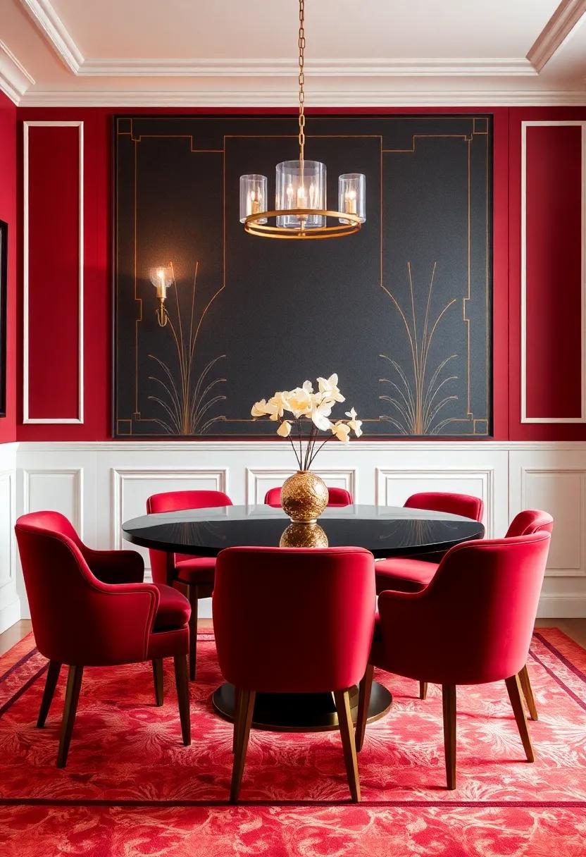 Transform your dining room into a captivating homage to the roaring Twenties by embracing Art Deco glamour. Bold geometric designs can serve as the heartbeat of your space; consider chic wallpaper with intricate patterns or striking area rugs that feature angular motifs. To further elevate the aesthetic, incorporate rich colors such as deep emerald greens, luxurious golds, and striking blacks, creating a palette that is both opulent and inviting. Accentuate the ambiance with lighting fixtures in polished metals or glass that echo the era’s interest with innovation and decadence.