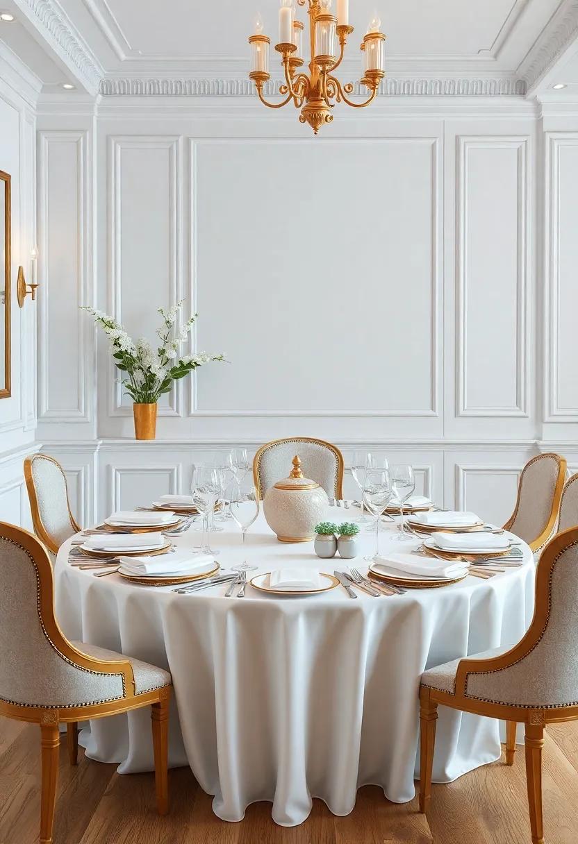 Every detail contributes to the overall ambiance, so don’t overlook the opulent décor that frames your dining space. Incorporate elements like rich fabrics for curtains or chair upholstery, and choose a stunning chandelier that accentuates the room’s architecture. For wall art, consider classic paintings or mirrors with ornate frames to reflect light and amplify the grandeur of the setting. A well-thought-out color scheme, such as deep emerald greens or regal blues, creates a cohesive environment that fosters a sophisticated vibe, elevating your gatherings from everyday meals to exceptional dining experiences.