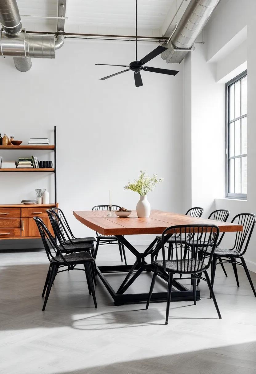 Imagine stepping into a dining room that effortlessly blends the raw, unfinished charm of industrial design with the serene elements of zen aesthetics. To achieve this delicate balance, consider incorporating exposed brick walls and metal accents alongside natural wood furniture and soft textiles. The key is to create a visual harmony that promotes tranquility and focus. A metal dining table paired with minimalist wooden chairs can provide a calming focal point while still celebrating the rugged beauty of industrial materials.