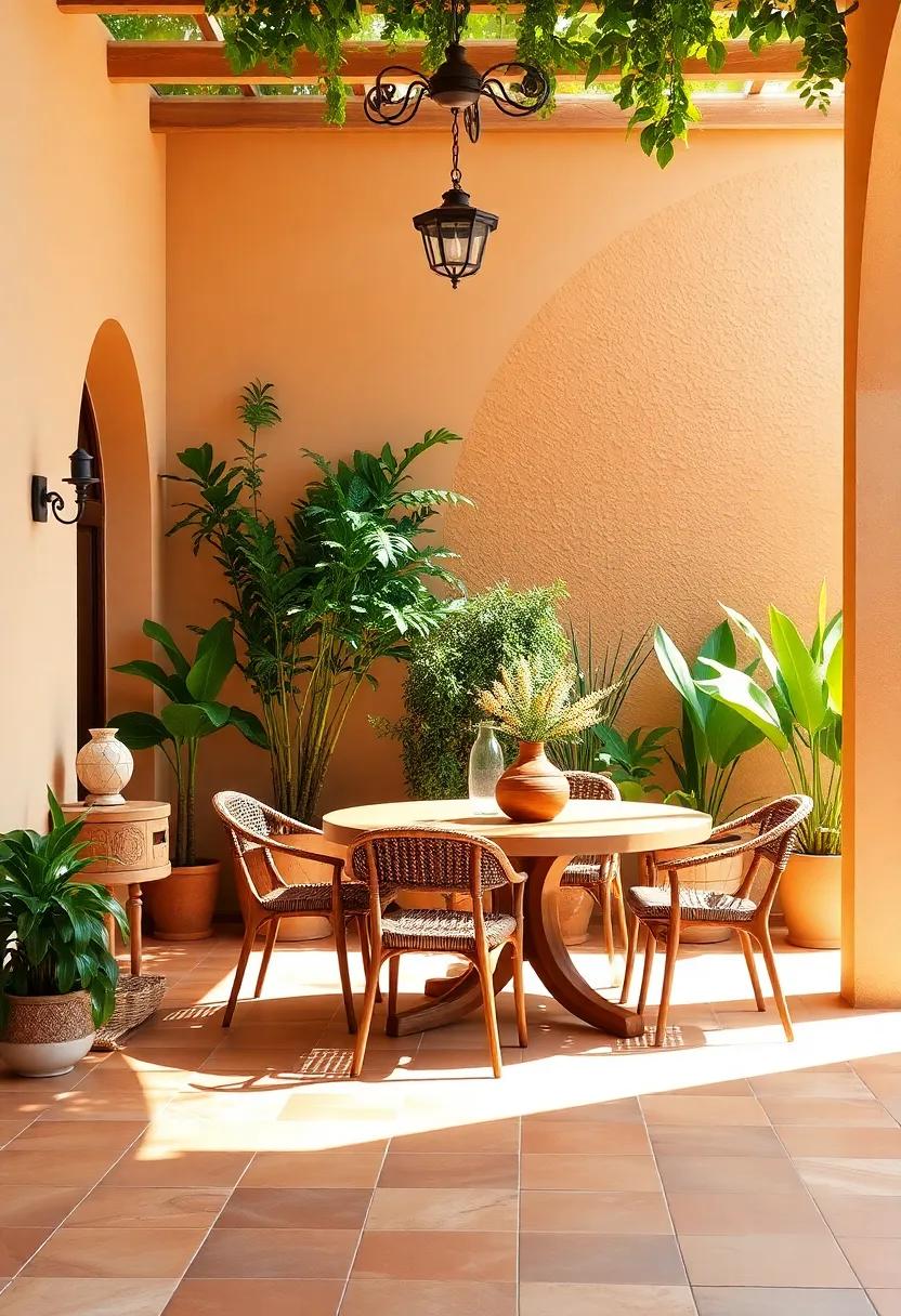 Transform your dining area into a sun-drenched sanctuary reminiscent of the Mediterranean coast by incorporating terracotta tiles that exude warmth and authenticity. These earthy tones can harmonize beautifully with whitewashed walls, creating a soothing backdrop. To enhance the tranquil vibe, layer in a variety of lush greenery. Think potted olive trees, cascading vines, and vibrant succulents to evoke that feeling of a garden in the sun. Accessories like woven baskets and rustic wooden tableware can further accentuate this nature-inspired setting, making every meal a delightful escape.